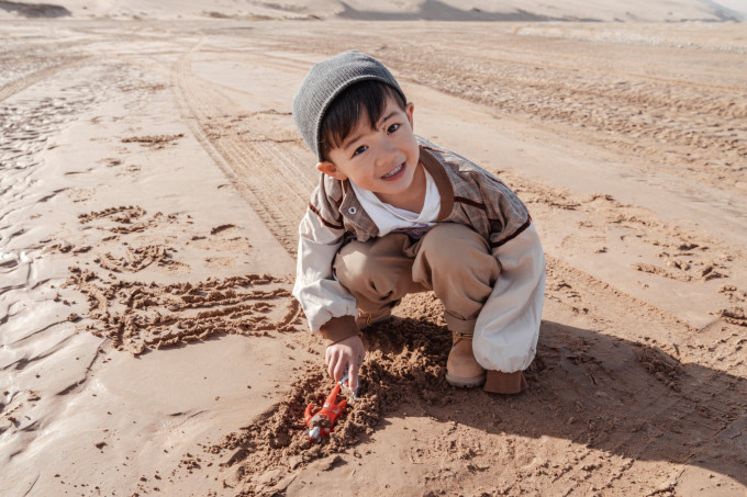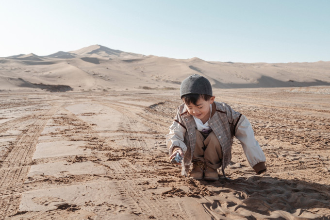 因为随身携带了“人肉小闹钟”,我们总是比预定的时间提前,天微亮,泰山就兴奋得拽我起床。老王——沙漠穿越老司机,多年的老朋友,也被我一早call醒,在楼下等着我们:“这次玩得有点野啊!”