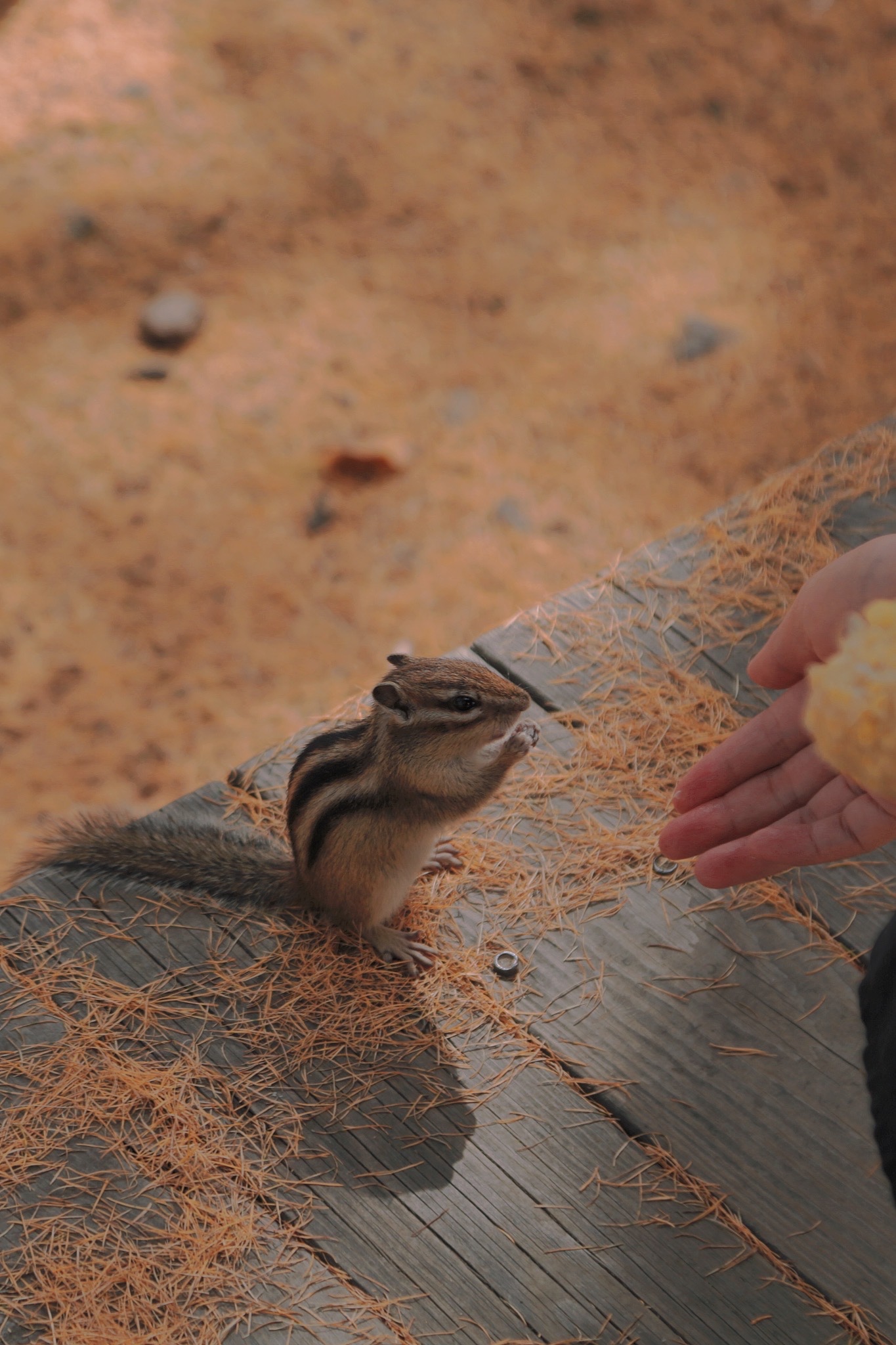 用玉米去喂很可爱的花栗鼠。