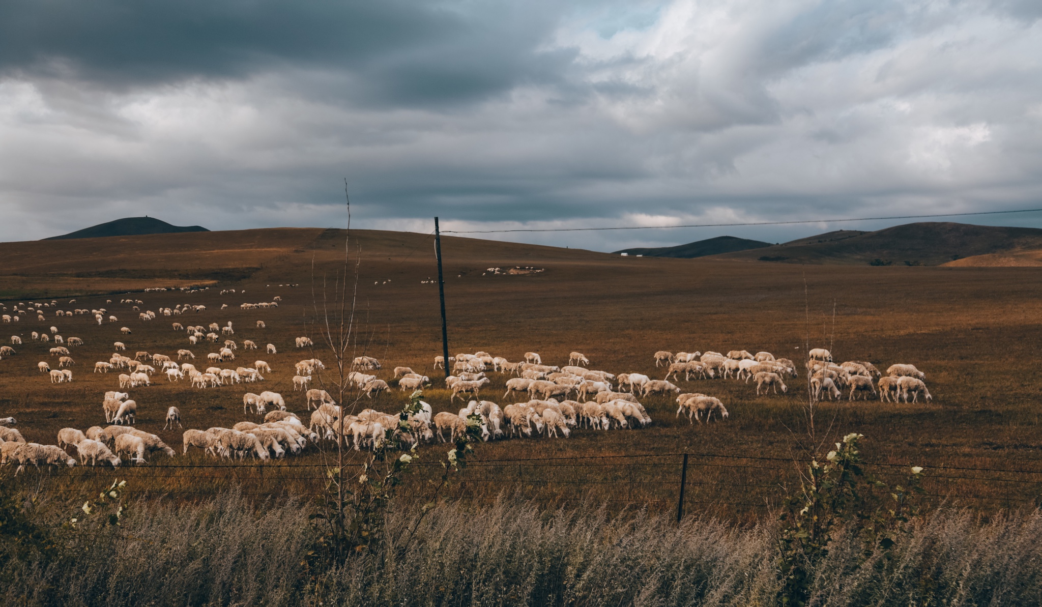 从齐齐哈尔出发,全程几乎都是国道,路的两侧就是起伏的草原,散落着牛羊,远远望去,星星点点。