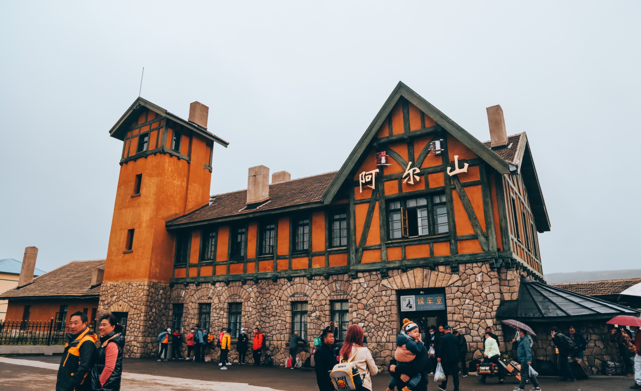 阿尔山火车站,素来被称之为是最美火车站,这里历史优秀,始建于1937年,2层楼的东洋风格,目前依然在使用,只是因为车站太小,所以停在外等候的旅人众多。