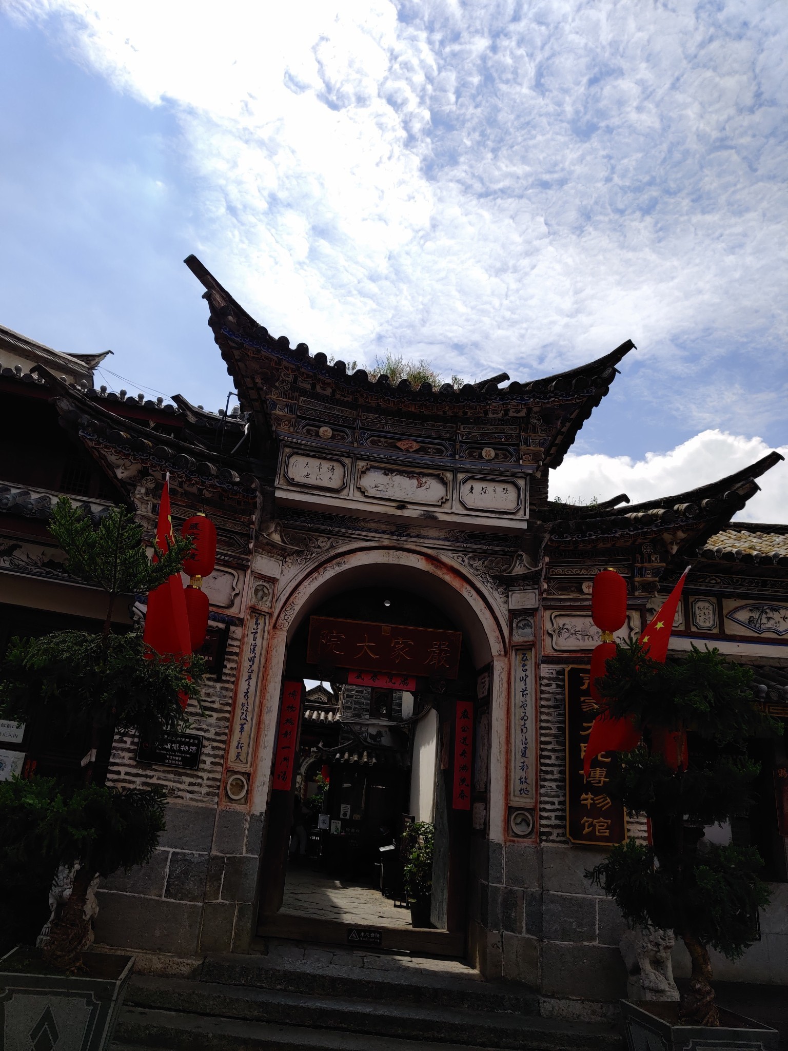 在花海逗留了一阵;因为喜欢历史,去到喜洲古镇,报了一个团,跟着一个导游,了解了严家大院这段历史,听说徐悲鸿、老舍都来过。让人印象深刻的是翘角飞檐高大繁复的大门,是“三坊一照壁”的院落,是阿鹏哥和金花的走婚习俗,最令人印象深刻的是这座大院的主人,严家老爷一句“光前励后”,艰苦创业,为家为国,前赴后继。每个院子都见证这一段历史。