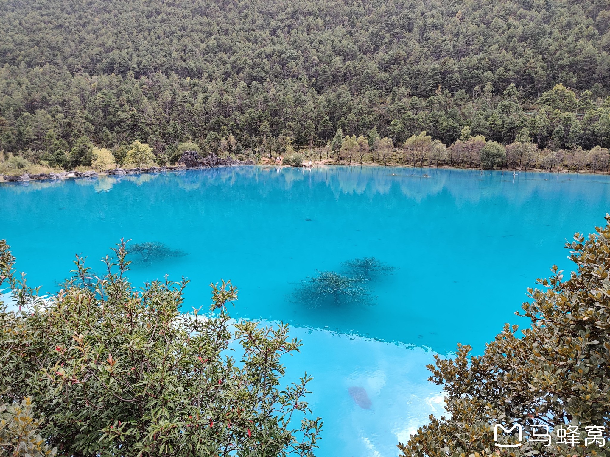 下山吃了午饭,走路去蓝月谷,不坐电瓶车是明智的选择,因为真的不远。走路反而更有意思。在蓝月谷,在湖边走,惊呆了!!!湖是蓝色的,碧绿的;瀑布;石头,远山,简直太美了,像是走进人间天堂。一路“咔咔咔”地拍照。眼前风景,美不胜收,难以表达~!
