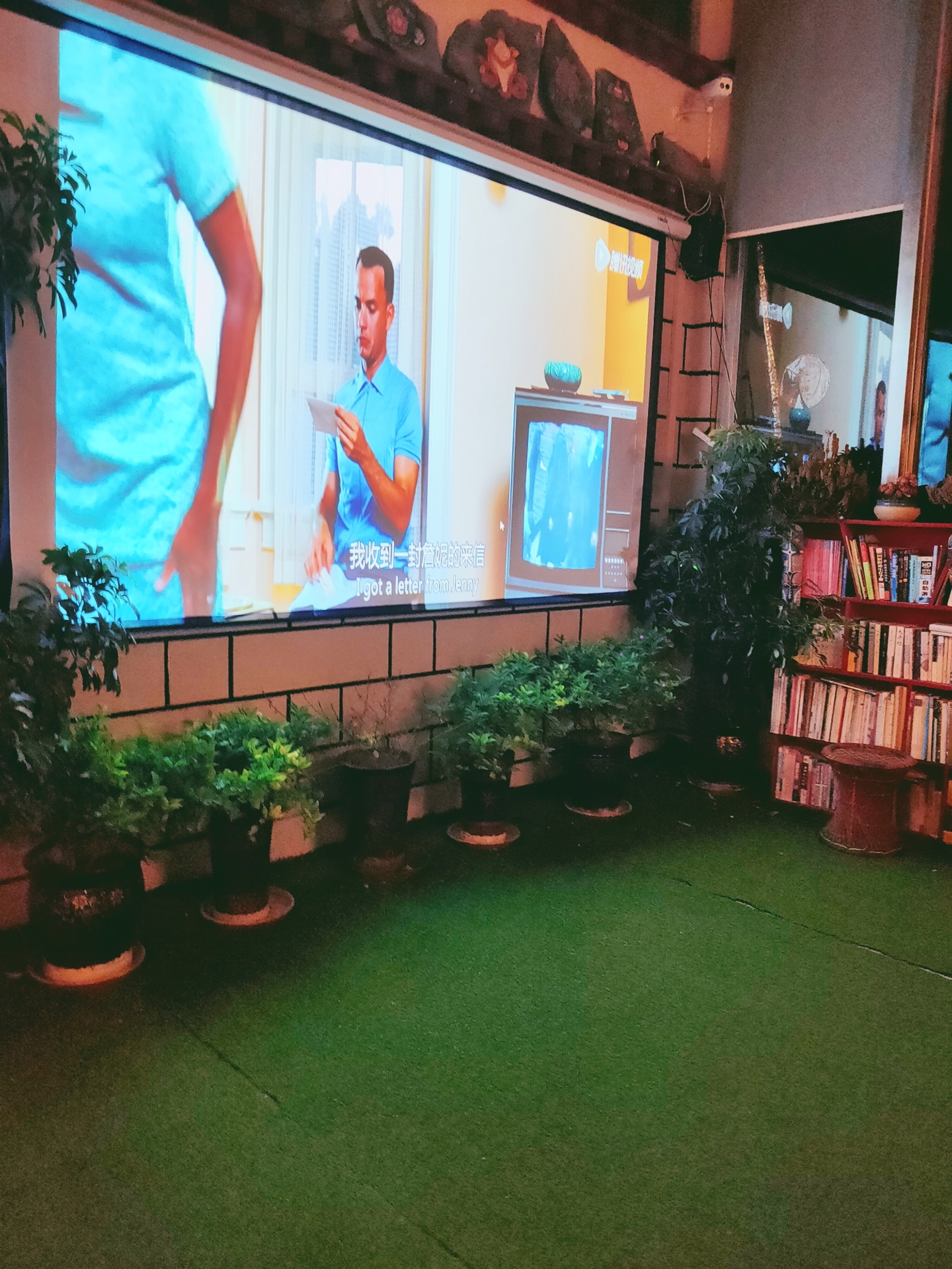 顶楼阳光房,晚上还可以看电影,还有健身器材