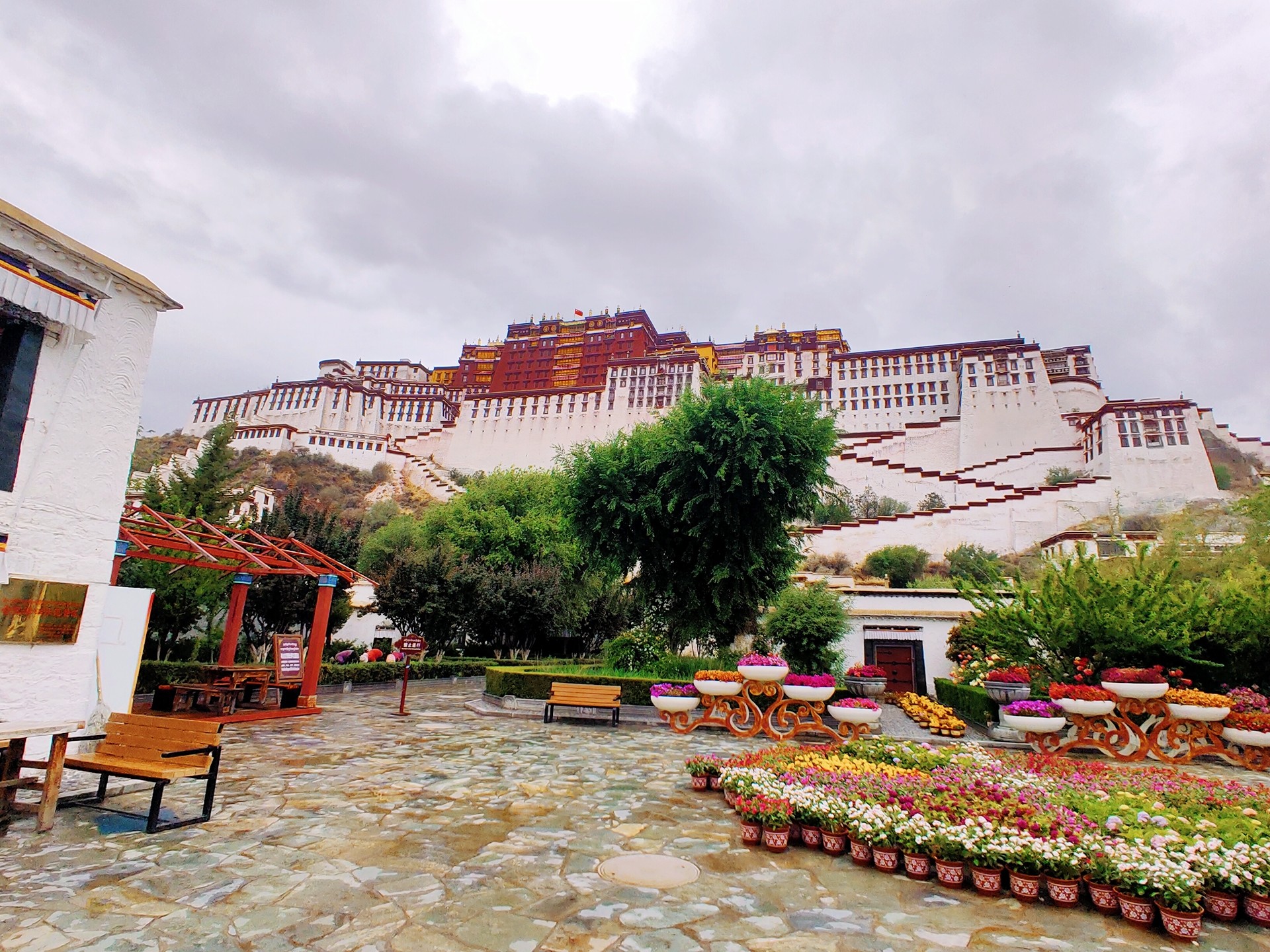 布达拉宫的下边种了好多月季花和蔷薇