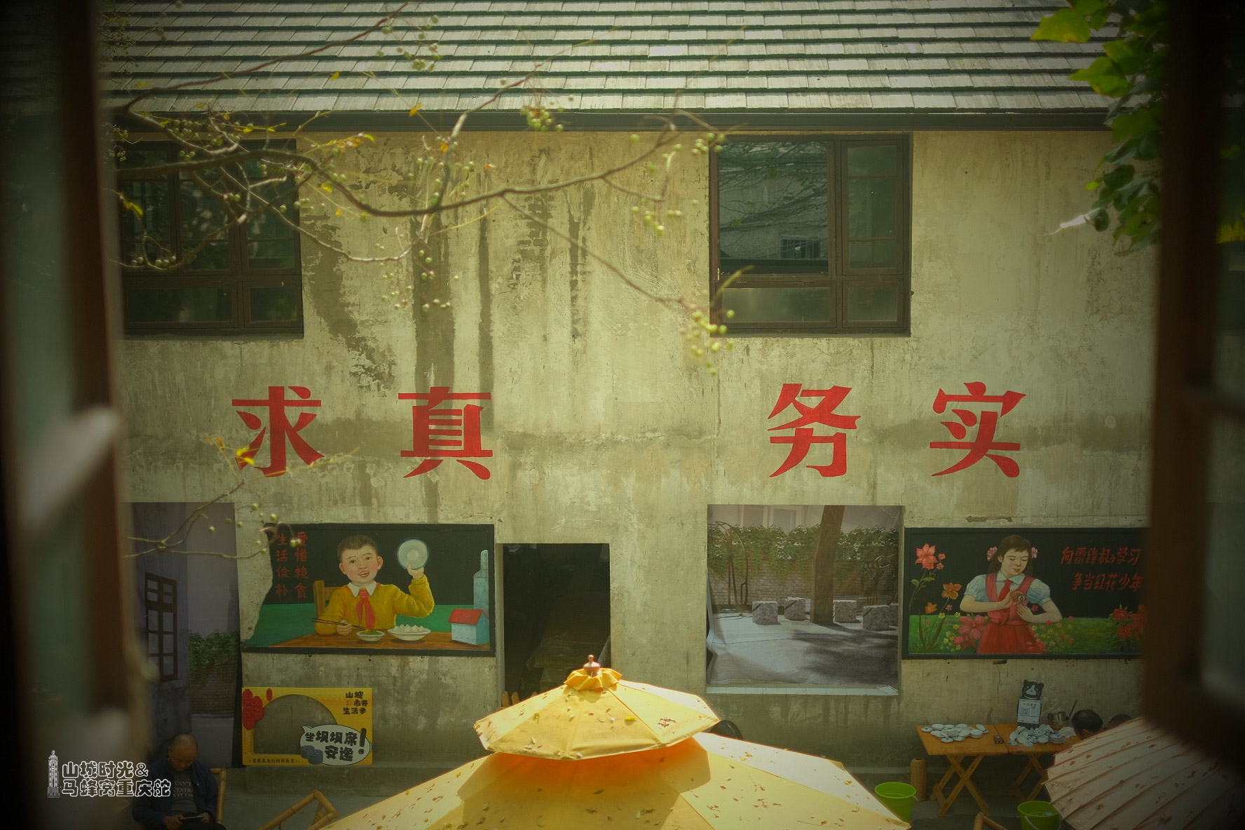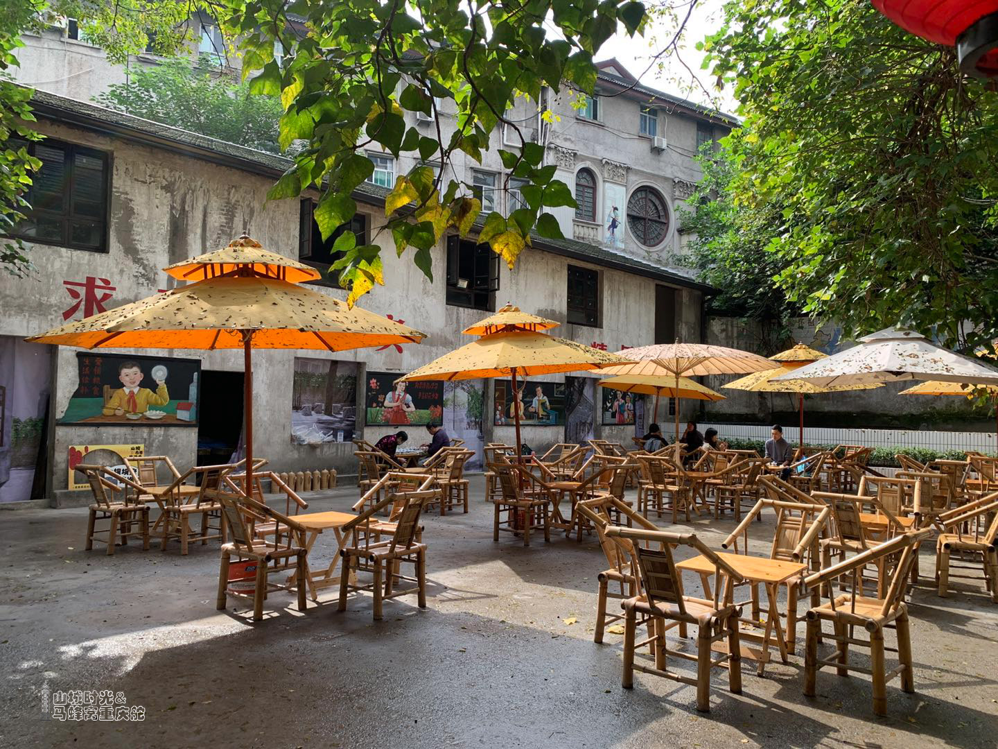 金马寺小学隐藏在山城巷深处,不大的操场被左右两侧的白色小楼围成一个封闭空间,即使无数次从山城巷上上下下也很难注意到他的存在,极具老重庆学校的韵味:但闻朗朗读书声,循音不见巷子深。而围墙上用瓷砖拼接的地图和戴着红领巾的少先队员,砖头垒砌的旗台和乒乓球桌,刷墨的黑板和刷绿的裙墙……这里的一步一景都让60到80后的人们充满感动,这是记忆中已经远去好久、只会在梦里出现的山城校园的童年时光。曾经的金马寺小学在渝中区很有名气,除了小学,一度还办了半年中学,不仅周围的小孩都在这儿学习,甚至还吸引了南纪门、菜园坝的学生过来。尽管90年代学校停办,但闲置的校舍却把当年的时光一直凝固保存到了现在。我们看到,右手侧是两层教室的主教学楼,左手侧是一楼教室二楼教师宿舍的综合楼,铁门旁是食堂,连木质的楼梯和楼板都是当年的样子。别看这个地方深藏小巷,地形局限,但当年的金马寺小学还是充分利用了山城的特点,按地形分层分段布局,范围反而不小,比如两楼间是大操场,而下面现在作为露天茶馆的则是以前的小操场。金马寺小学的名字由来则有一段美丽的传说,据载,这一带曾经有个大石洞,洞中立有不知是何人雕刻的石马。很早以前有一位和尚云游至此,因洞中无人,便在此住宿。一天老和尚化斋回来,发现通往南纪门的石板路上有很多马蹄印,四处却寻不到马儿踪影,心中十分疑惑,怎料,晚上便梦见了一匹金马突然从洞中奔出,惊醒后发现原来洞中的石马也杳然不知所终。后来便在此地修了一座寺庙,取名金马寺,民间传说虽然充满了浪漫色彩,但却给这个地方留下了两个美丽的地名,寺庙所在的地方便被成为金马寺,小学名字也由此而来,金马留下脚印的街道便是马蹄街的名字由来。听老人说,以前学校供老师办公的房子便寺庙遗留下来的,里面还保留了很多寺庙的廊柱和雕刻精美的柱础,马蹄街这边的学校正校门左右两侧还曾有两个巨大的雕花石缸,每个都能容十几个小朋友,是小朋友捉迷藏最喜欢的地方。