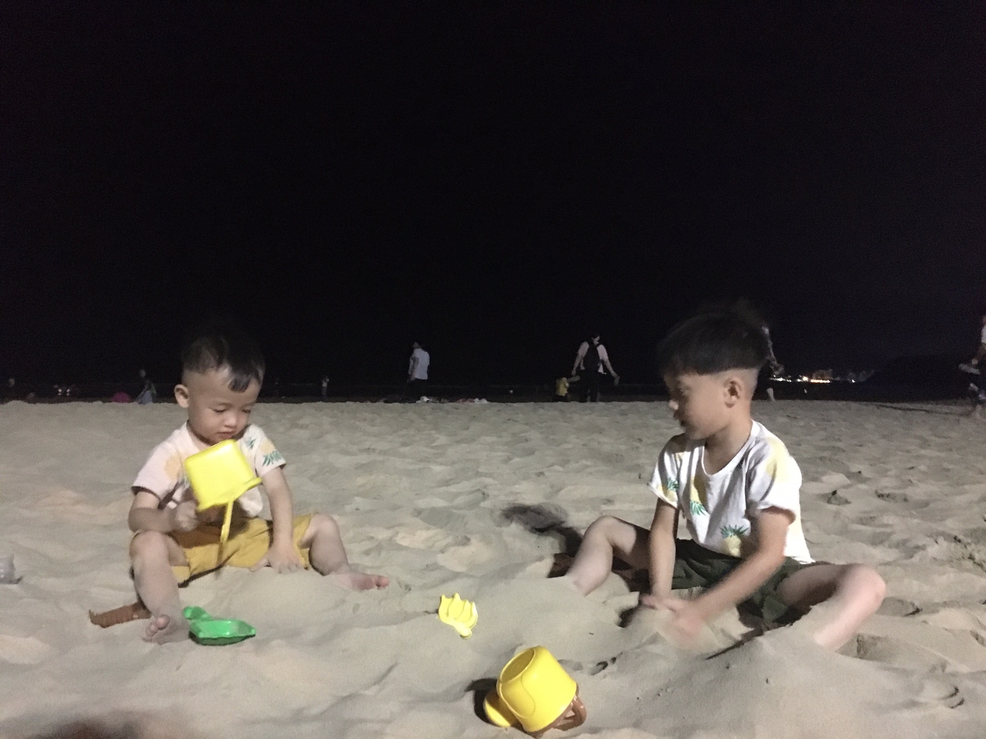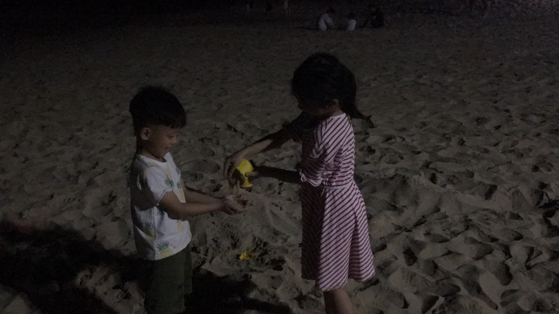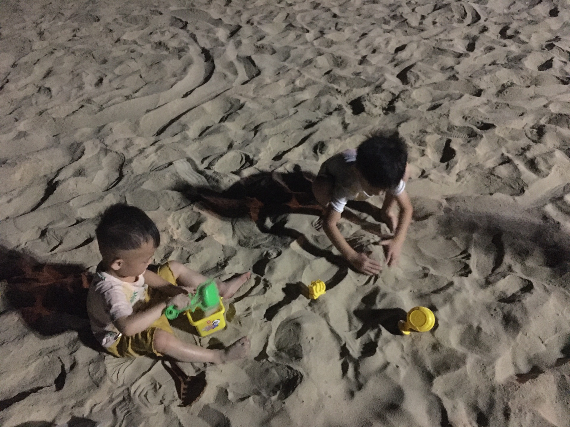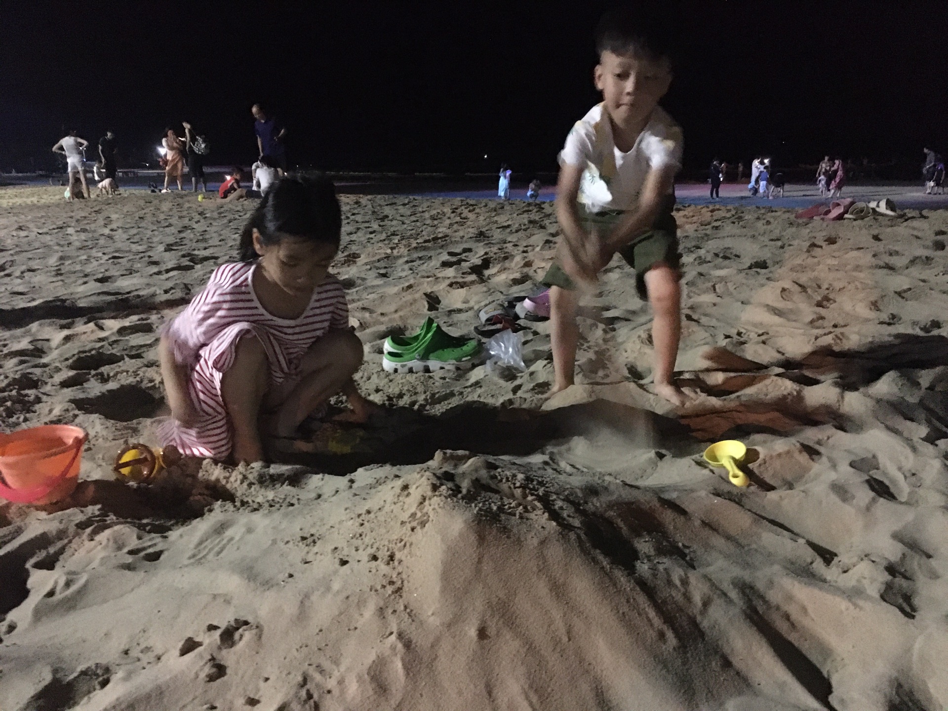 饱饭茶足之后,已经晚上八点多了,于是到海滩吹吹海风,入夜后,人少的沙滩显得格外安静,漫步,踢沙,无论大人还是小孩都悠然自得。