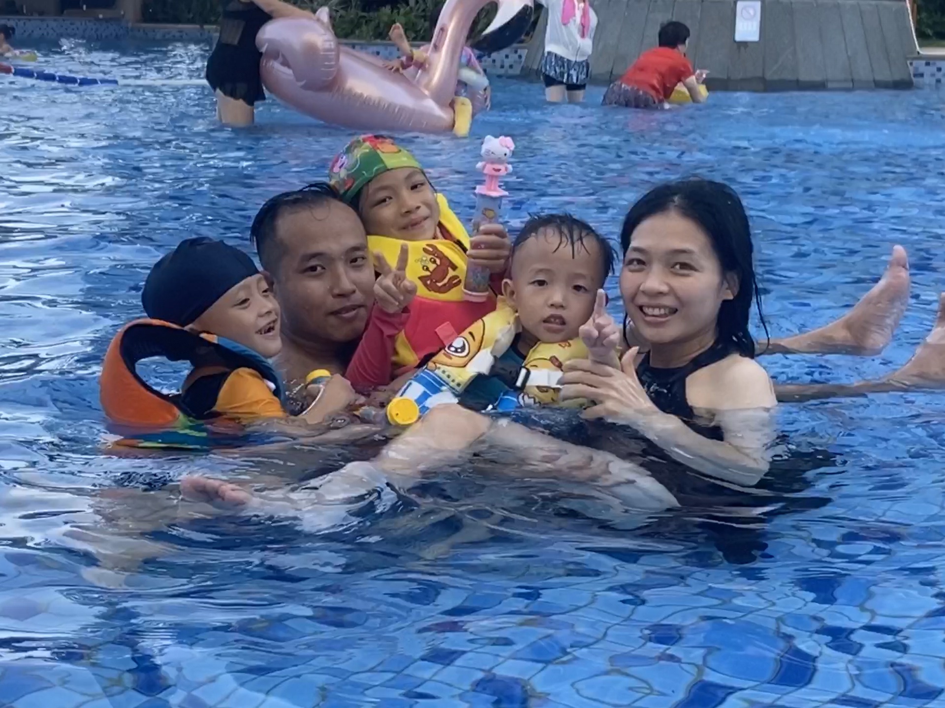小朋友就欢乐咯,简单收拾下就直奔游泳池。我跟老同约一起到闸波农贸市场买海鲜,为今晚晚饭准备,第一天是辛苦了点,但看到孩子们的笑脸,我觉得值了。