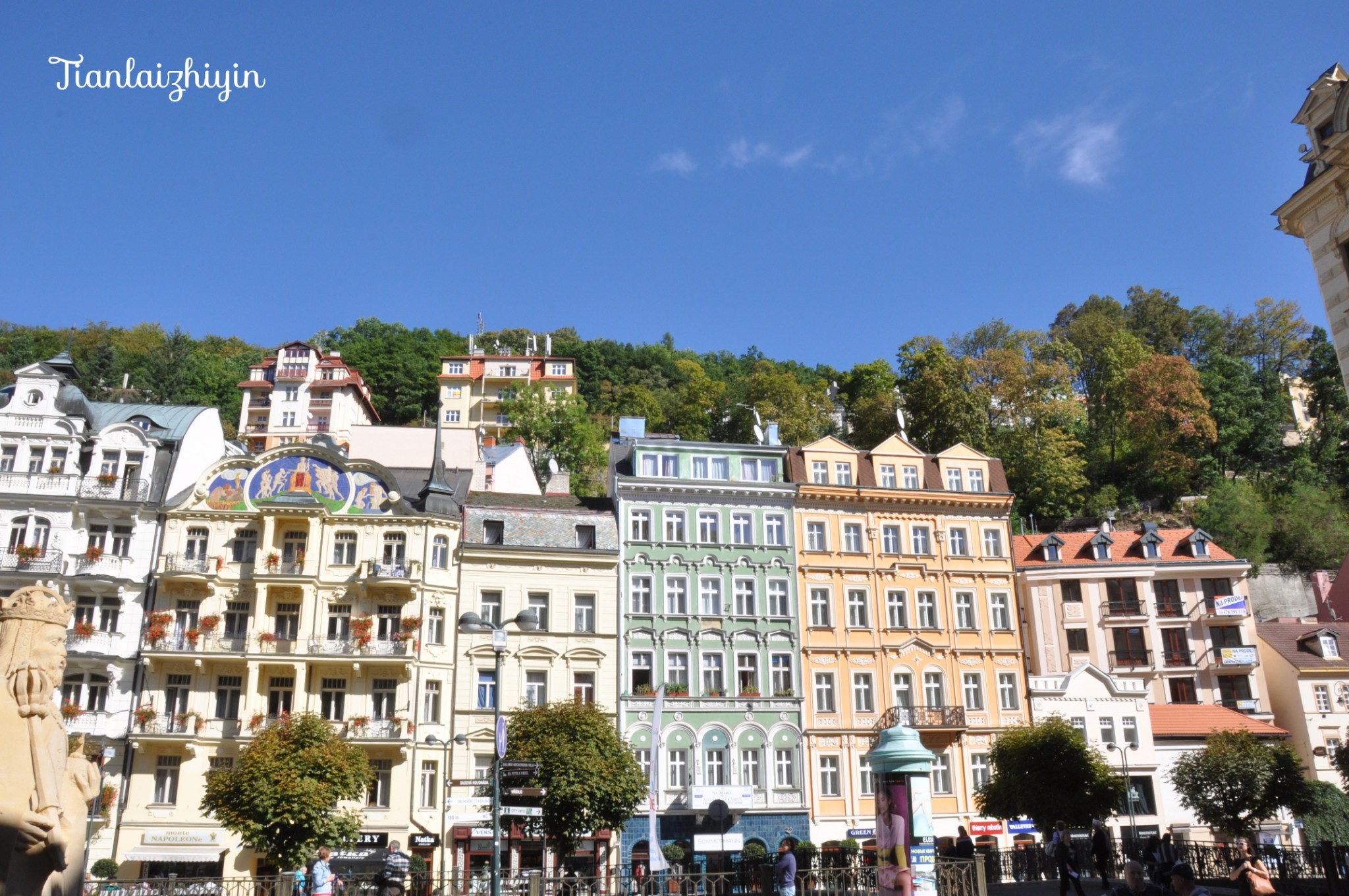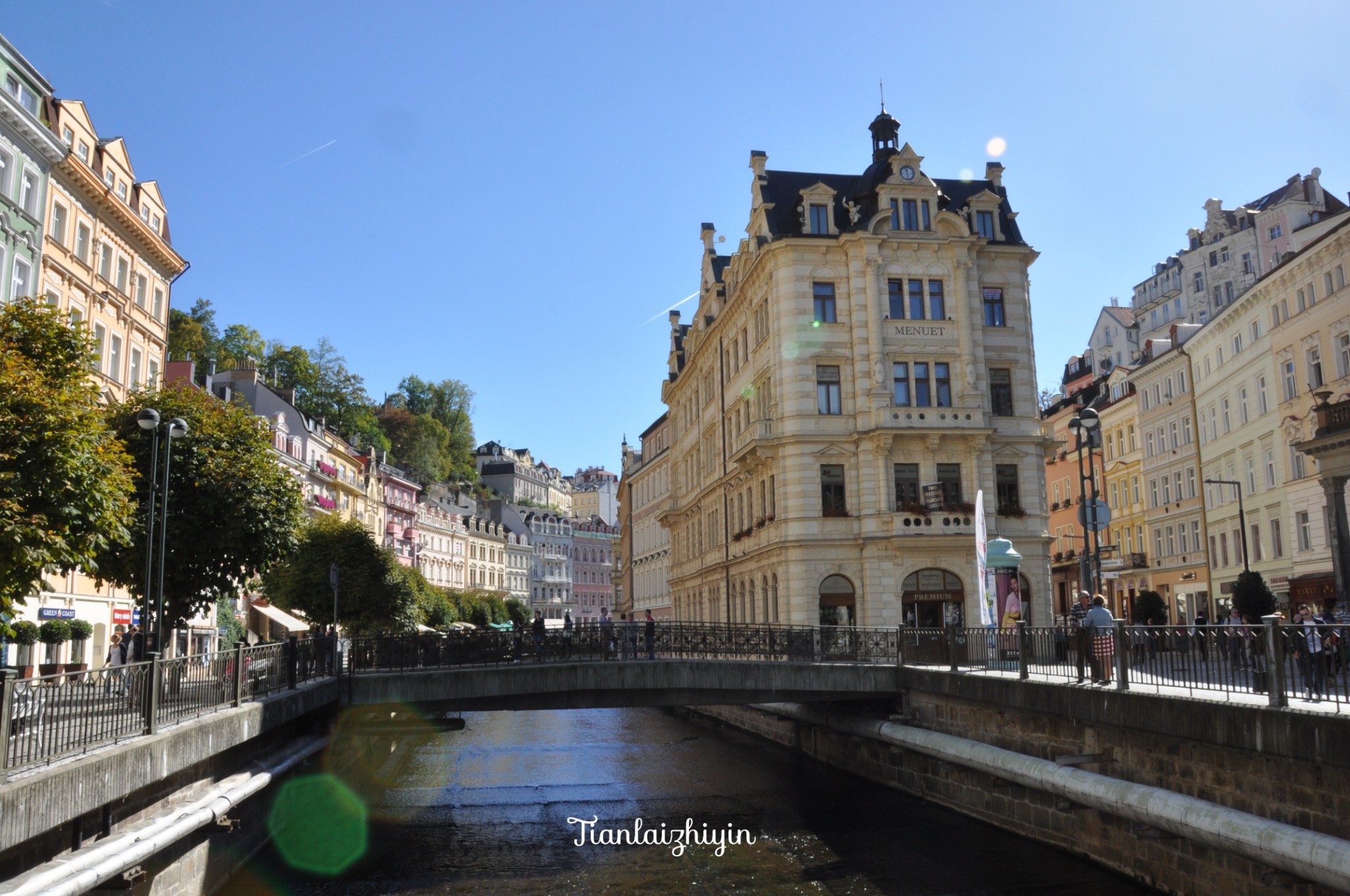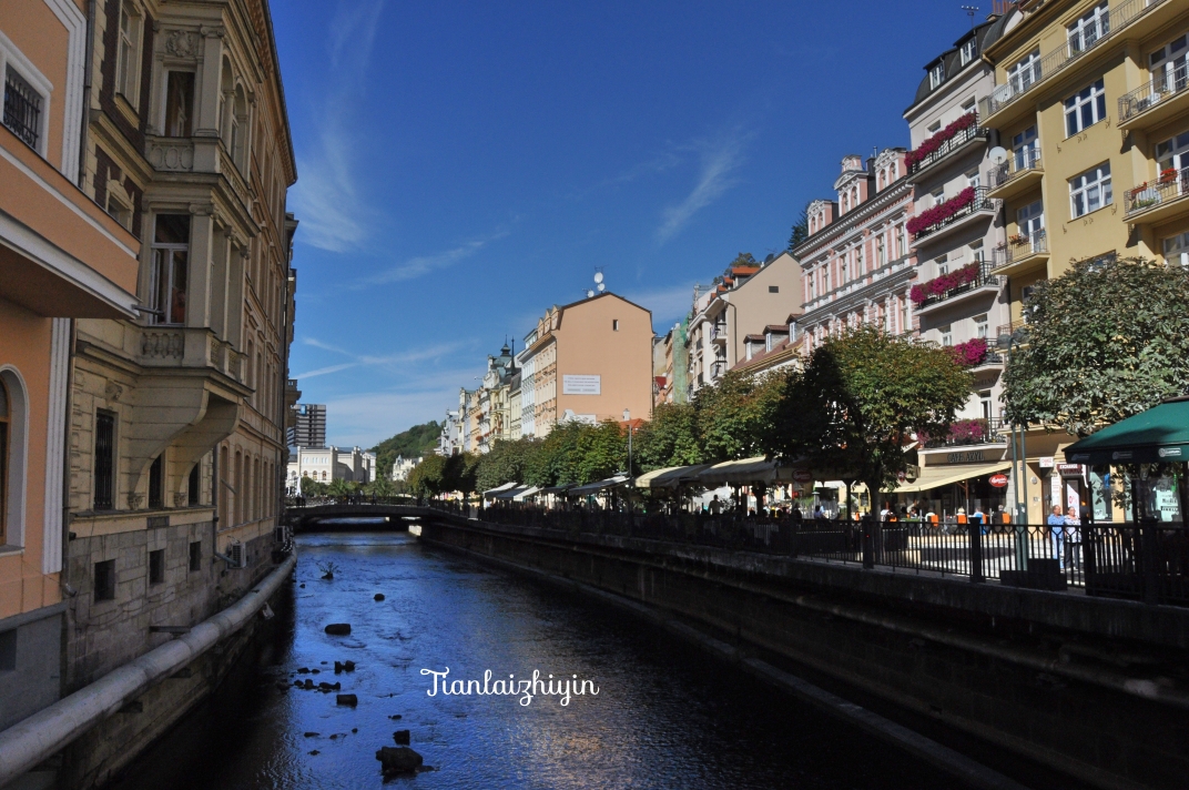 卡罗维发利小镇藏于山谷之中,中间流淌的是泰普拉河。河的左岸是新草地街,右岸为旧草地街。