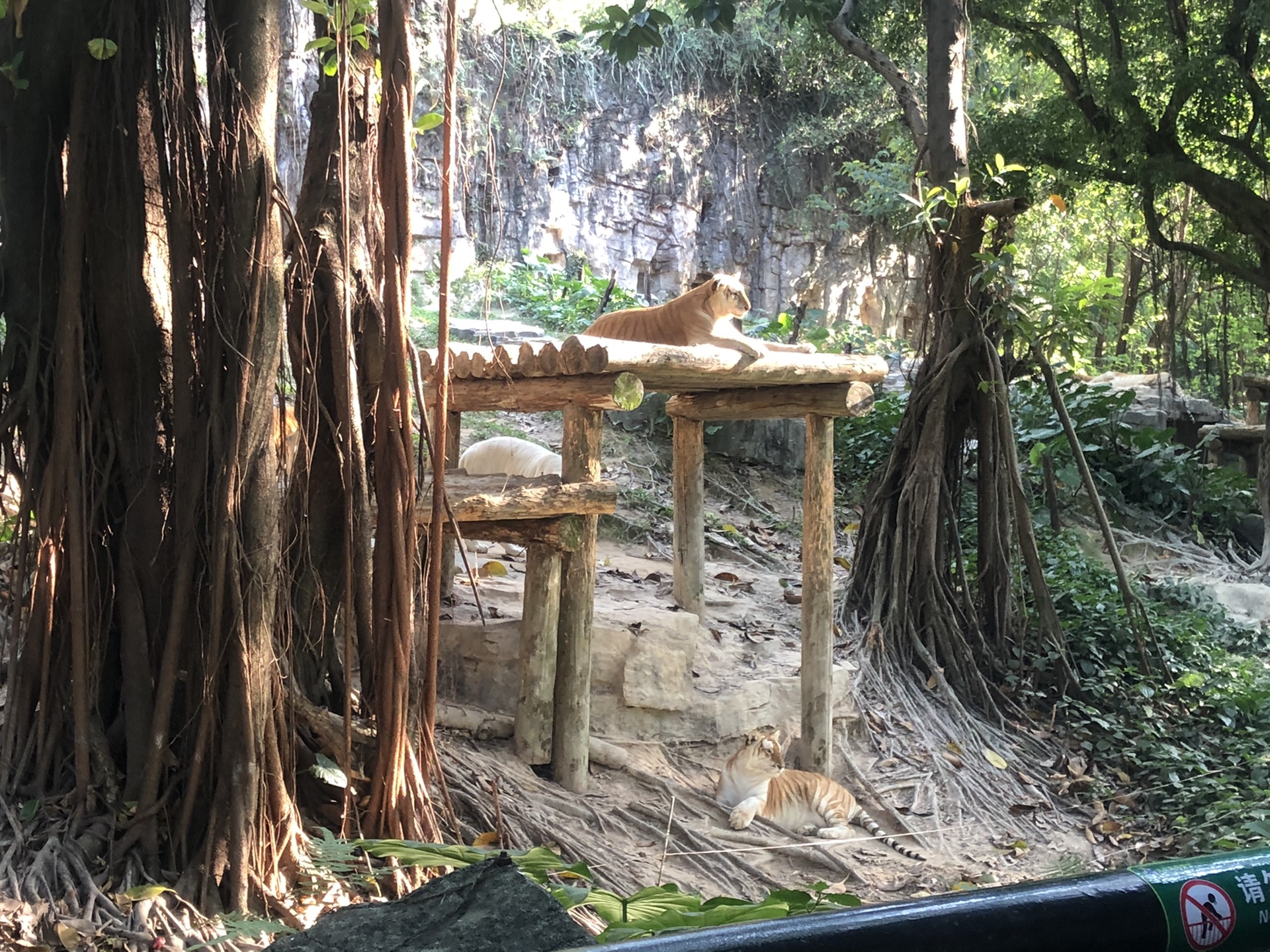 在长隆酒店旁边就可以坐免费的巴士去长隆野生动物园。我们是两日不限次数入园的门票,但是只用了半天就逛完了。景点中比较推荐缆车和小火车。最让我心痛的是熊猫只远远看到了两小只。但是我老公看到了很多他想看的猴子。园区可以看到保温箱里的小动物,大部分动物都很悠闲,不是关在笼子里。