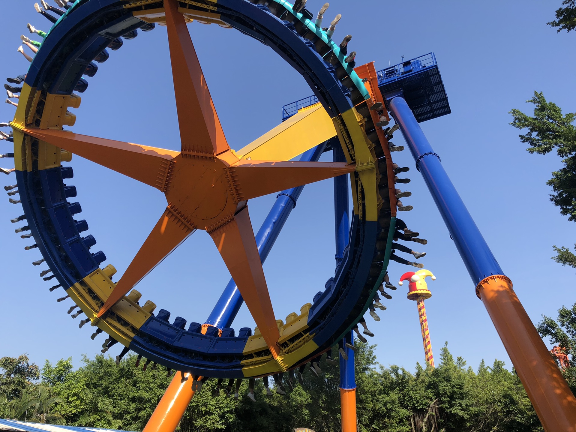 这一天人不是很多,我们11点多入场,下午3点多就出来了,垂直过山车和十环过山车没有敢玩。垂直过山车垂直高度有60米!看着就很刺激!玩的第二个项目,旋转的小碗把我早上吃的西瓜味道都转出来,严重影响了我后续的发挥。