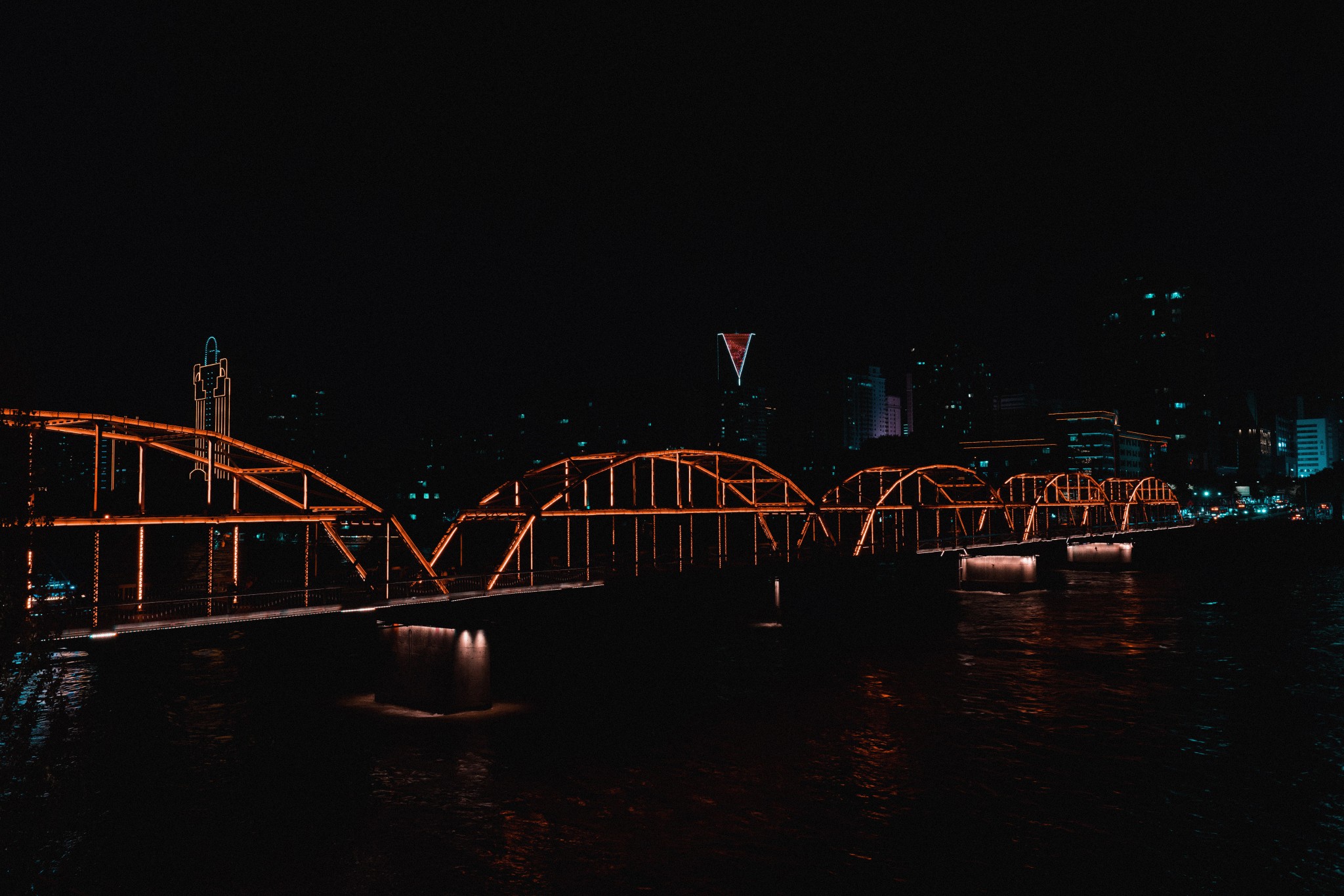 夜幕下的中山桥又别有一番风味。