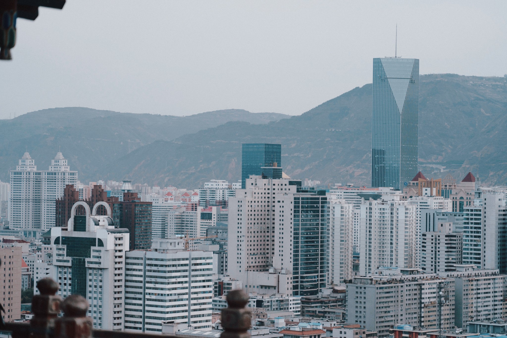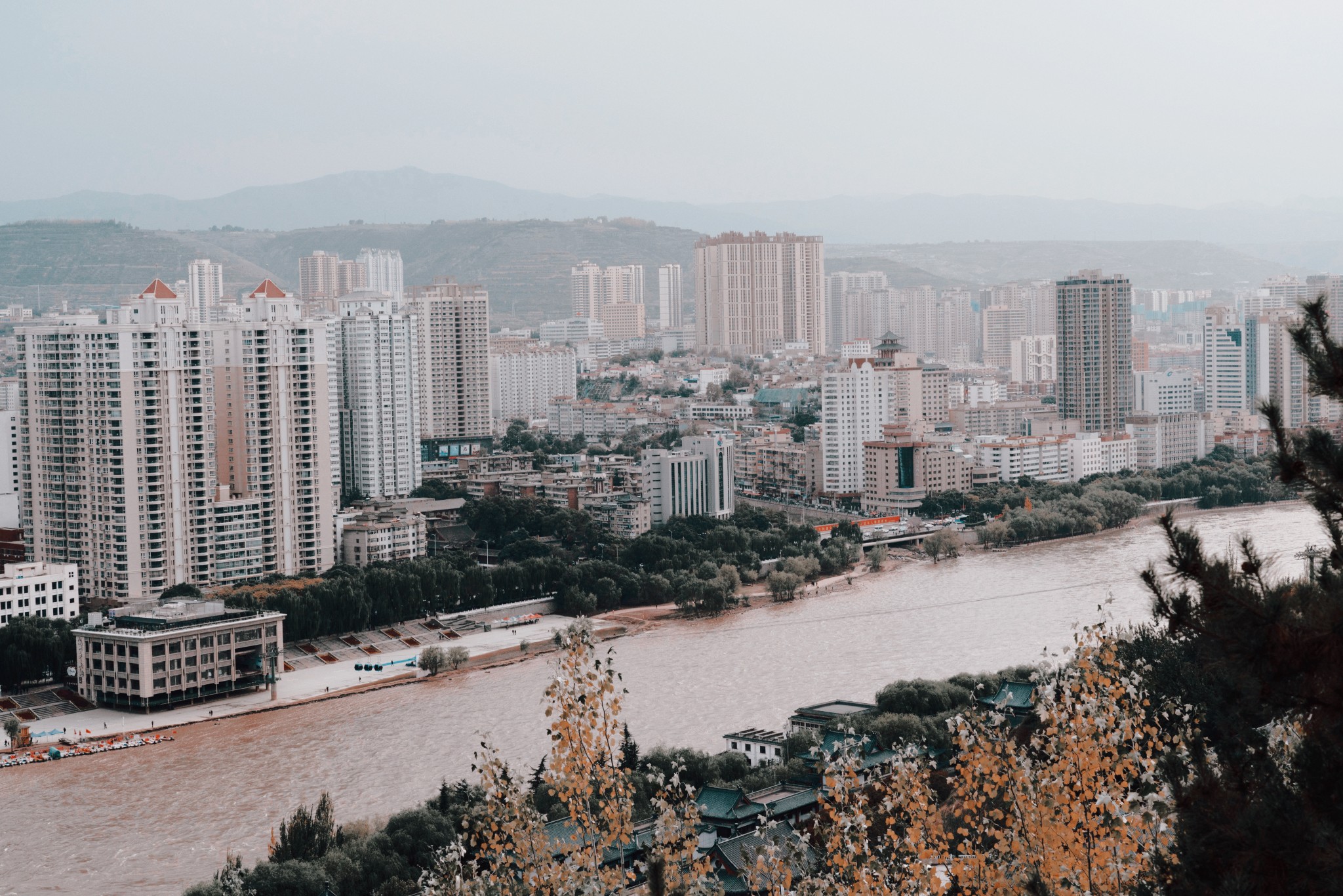 走过桥之后,刚好可以去对面的白塔寺公园,俯看兰州全景。