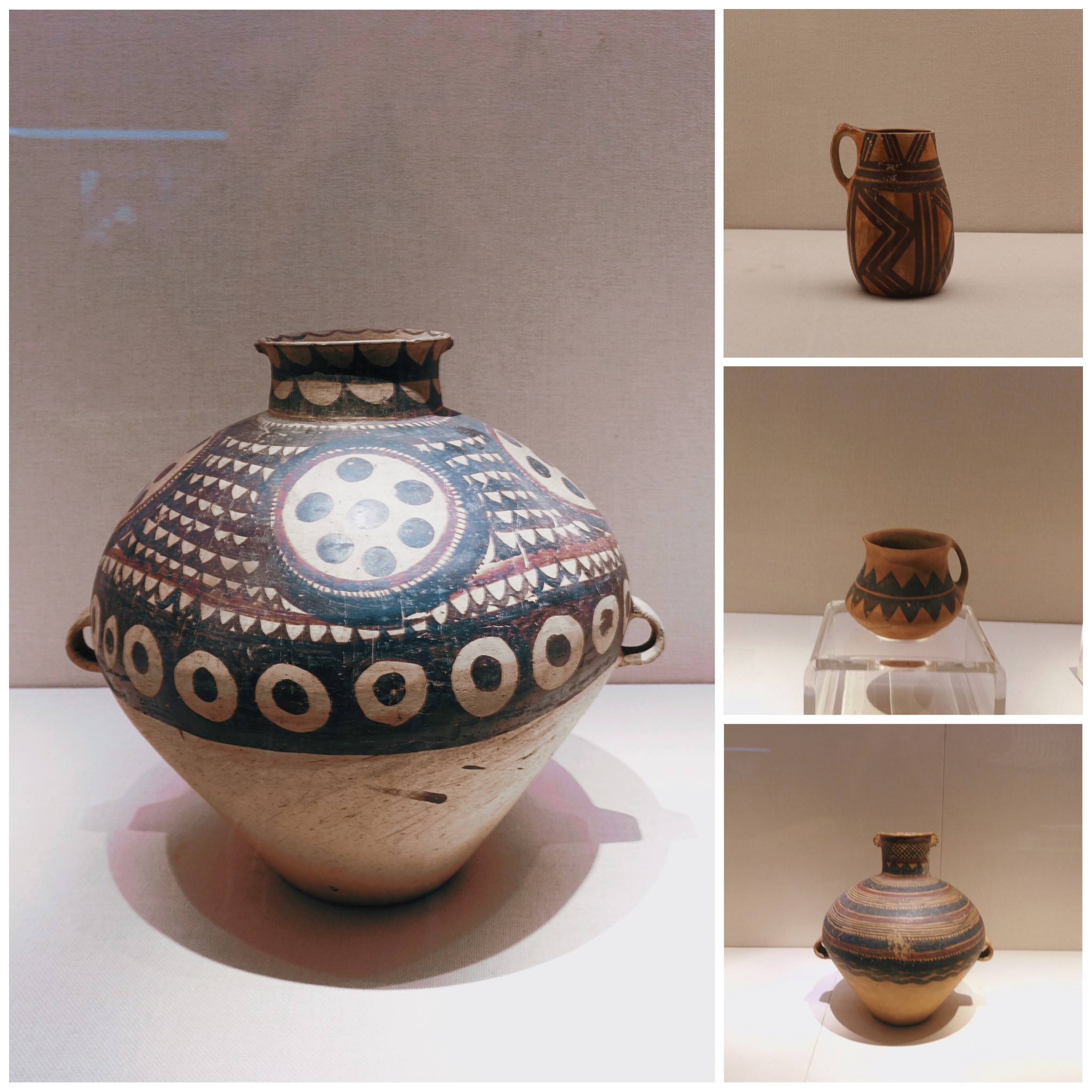 博物馆的彩陶最令我印象深刻,各种中古图案可太好看了,折线纹、菱形纹、方格纹......都是复古单品中的经典元素。时尚果然是轮回的,现在这类印花元素也依旧流行在各类时尚单品和陶瓷器皿中。