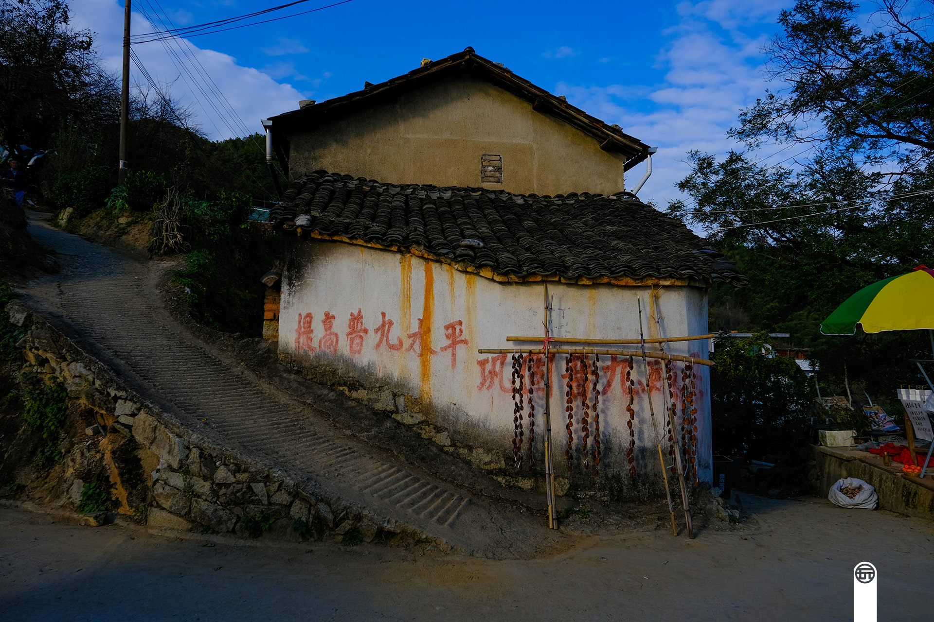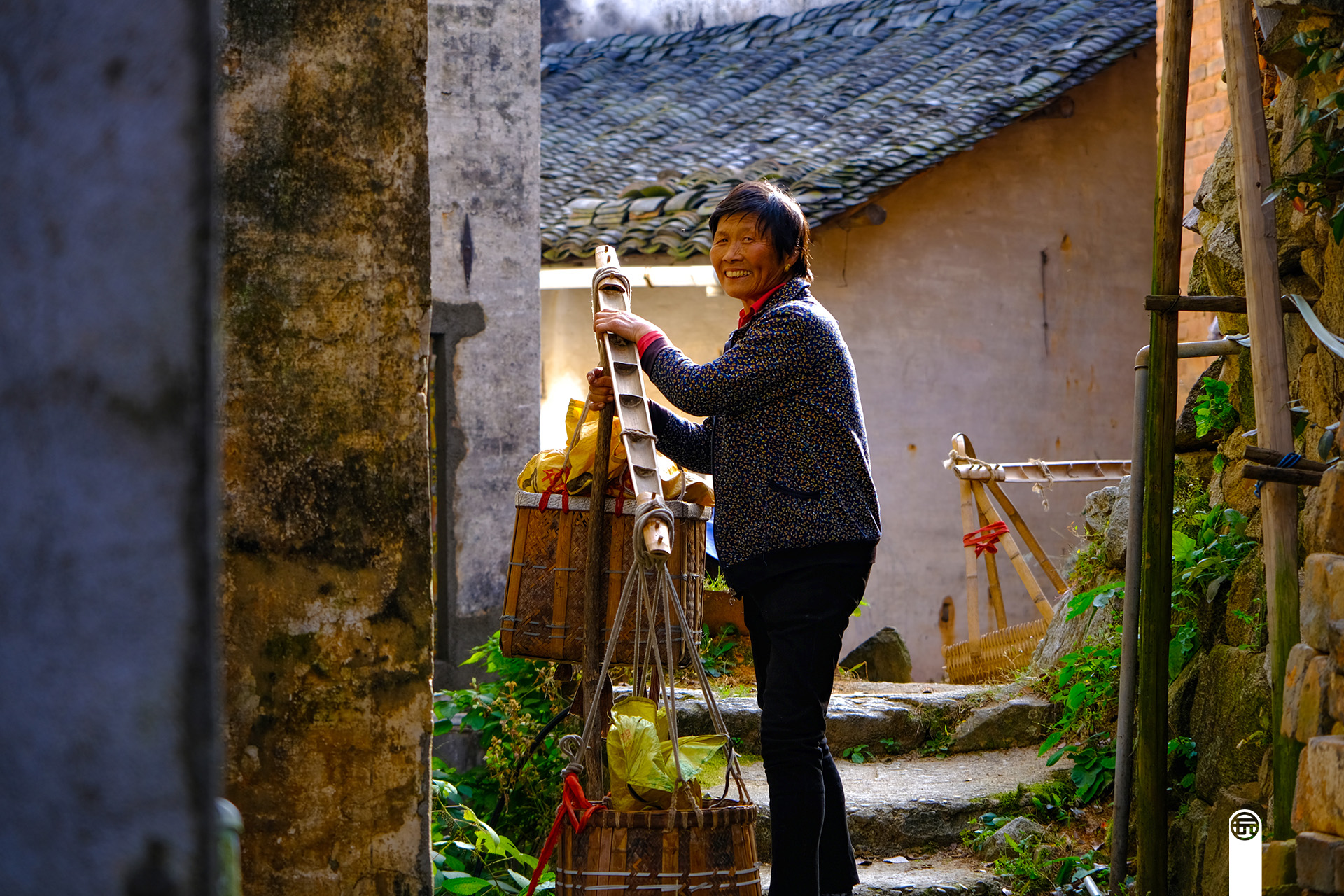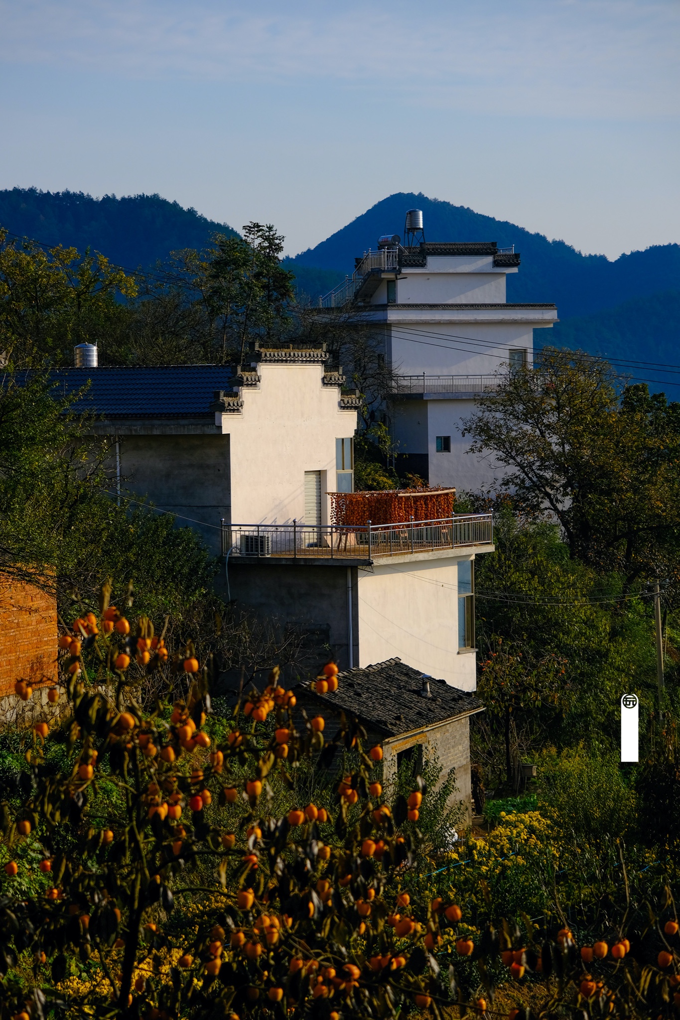 可能是高山建房不易,这里的民居建筑都是高高的,大多数是多层建筑,犹如竖立的火柴盒,窄的小巷子四通八达,好在小村不大,不然行走小巷子中会迷路的。在村里经常会遇见挑着自家收获的柿子去固定地点加工的淳朴村民,你能从他们脸上灿烂的笑容感受到秋天丰收的喜悦。