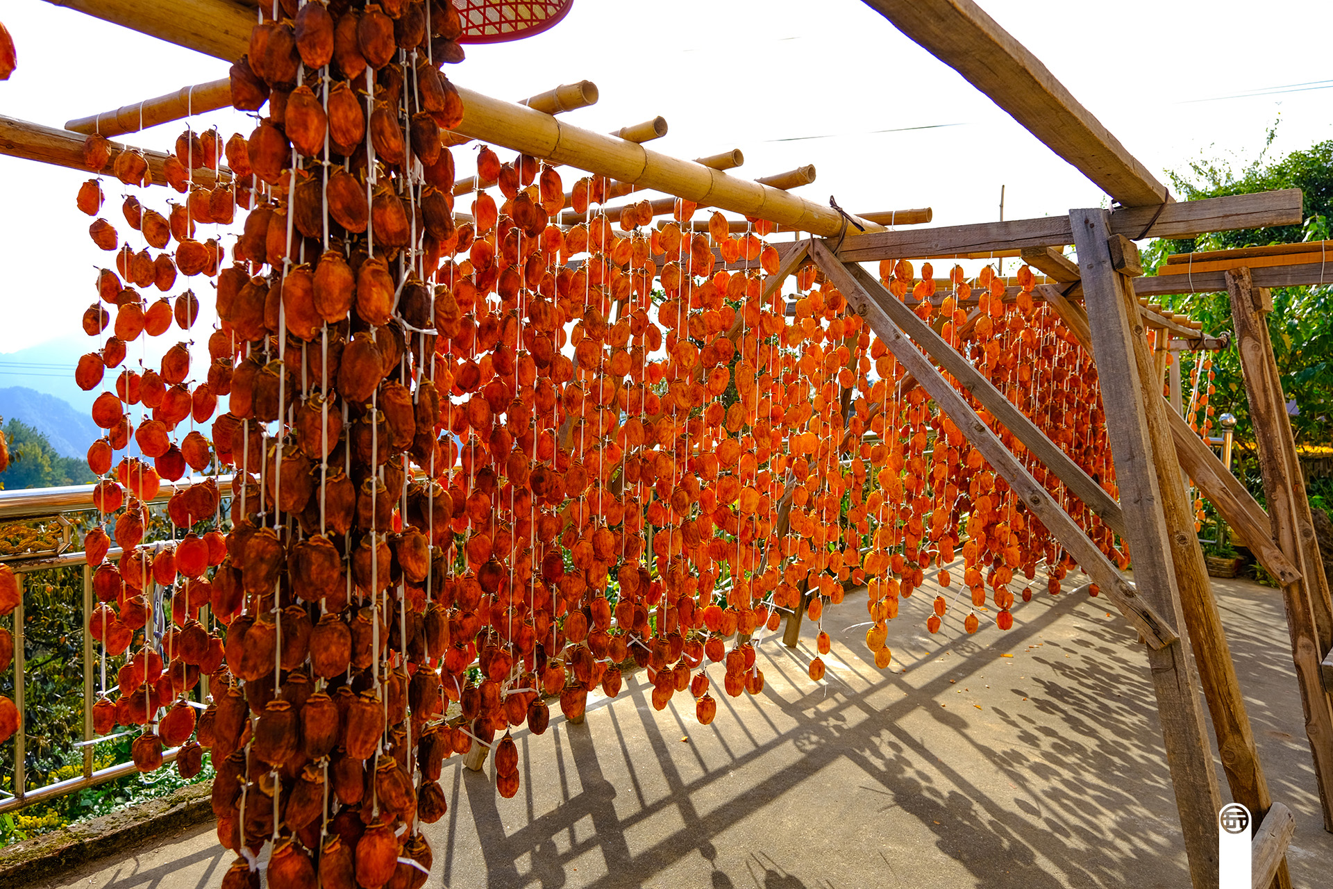 村子中,有的是各家各户自己加工晾晒柿子,有的则是固定的加工场所,一些村民会将自家种植收获的柿子拿到这里,让加工场所收购加工。虽然售价肯定没有柿子饼高,但是好在省事不少。