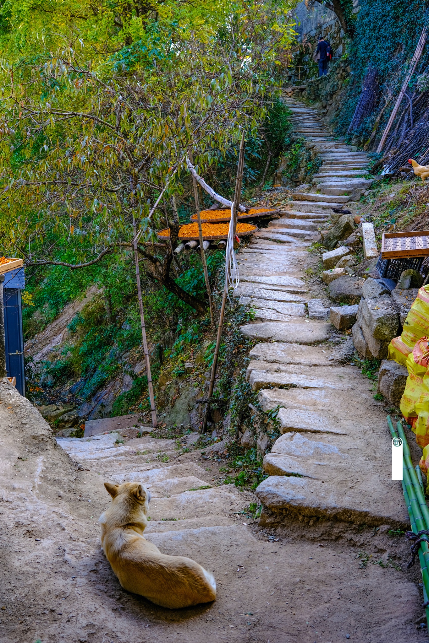 姬川村依山而建,登高俯瞰只见山下那蜿蜒的山间小道伸往远方,成群挂满金黄色柿子,布满在山间,据说这里生长着许多树龄达几十、几百年的老柿子树!