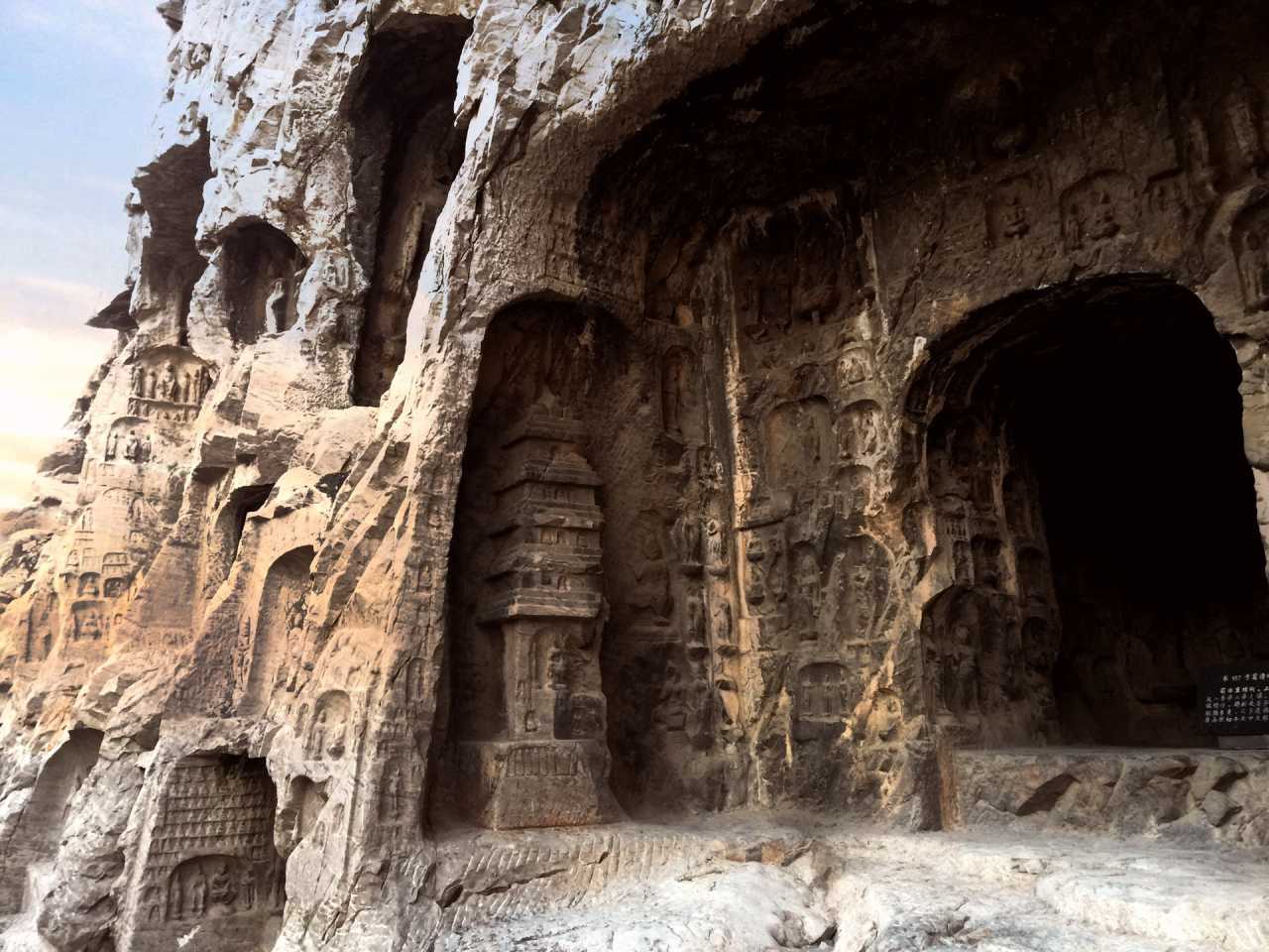 龙门石窟,历史四大石窟之一,现为世界文化遗产,在东西两山的峭壁上长度绵延一公里。