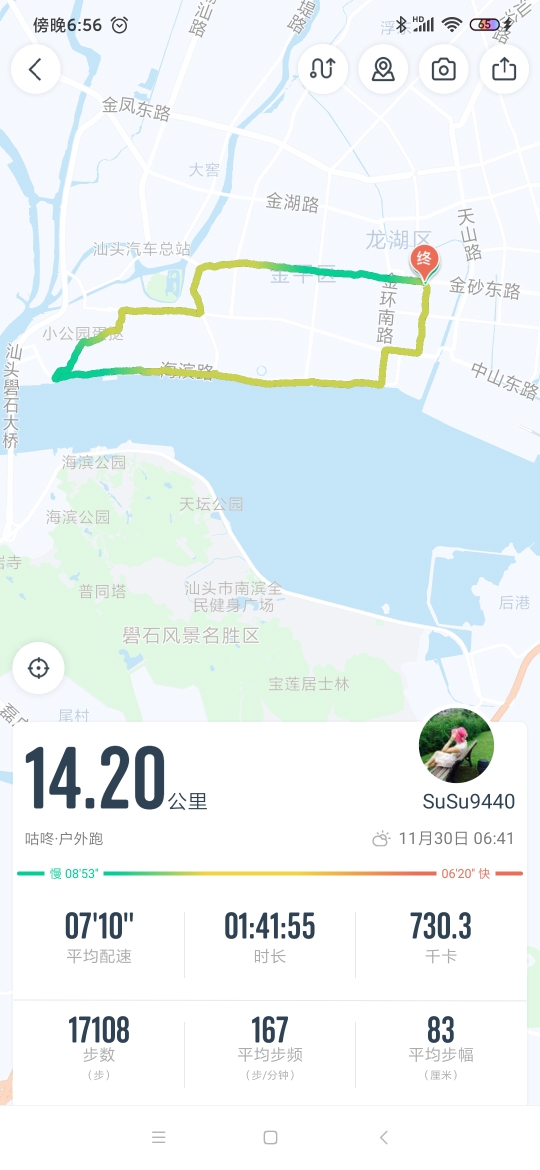 住宿一晚,早起跑步,想象中的滨海路应该是外滩一样的路吧,可惜在修路,我的配速一直提不上去,不过还是打卡完成,去了人民公园,小公园,汕头老城