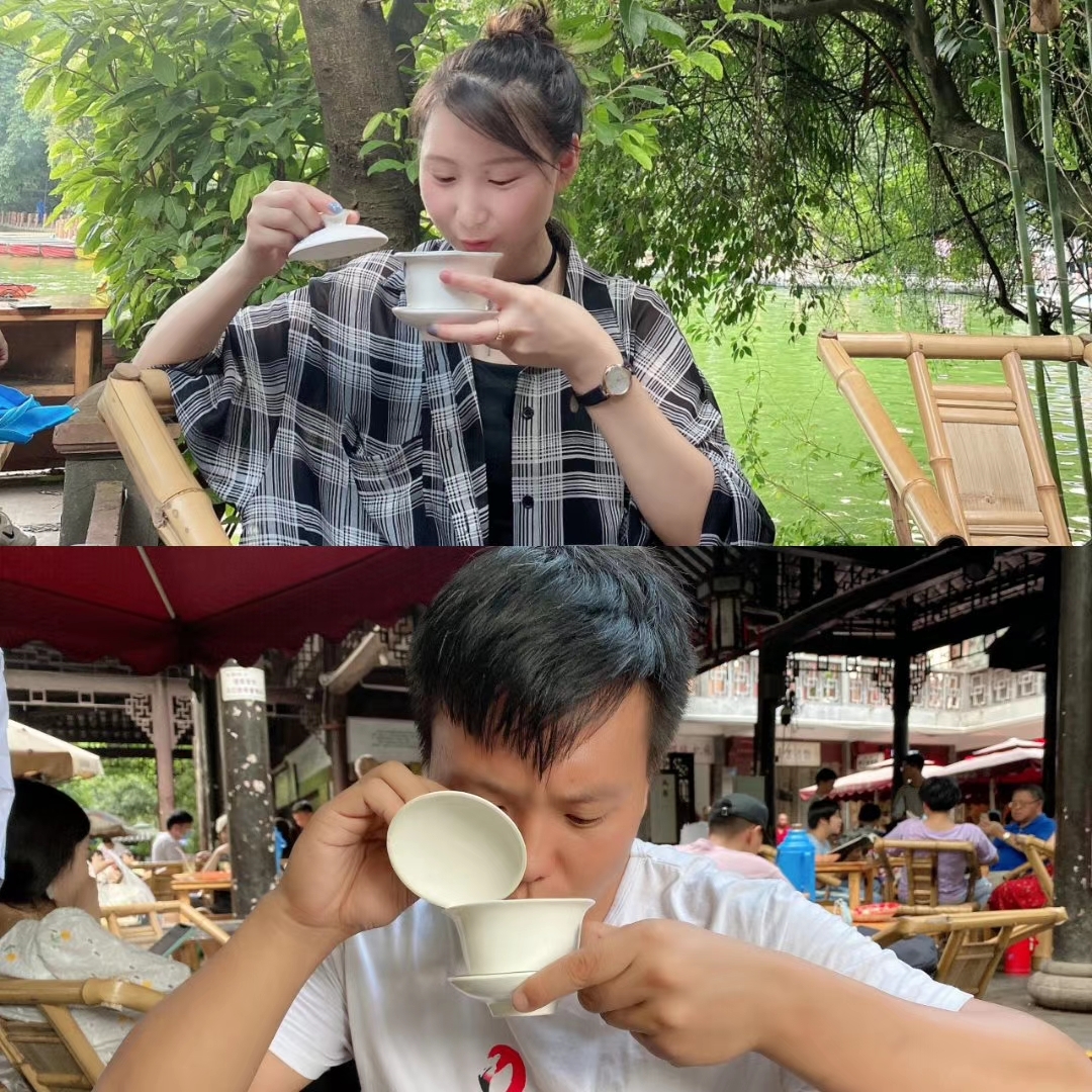 由于茶社人多,我们跟一个大叔拼桌了。大家喝着茶慢慢聊了起来,通过聊天知道他是一个来自上海的退休大叔,年轻的时候在四川当过兵,现在故地重游。 在成都停留几天后还要自驾进藏,言语间让我心生感慨,真好。 我们以后到了这个年纪要是能有这样的生活状态和心态就很棒了,嗯,加油!