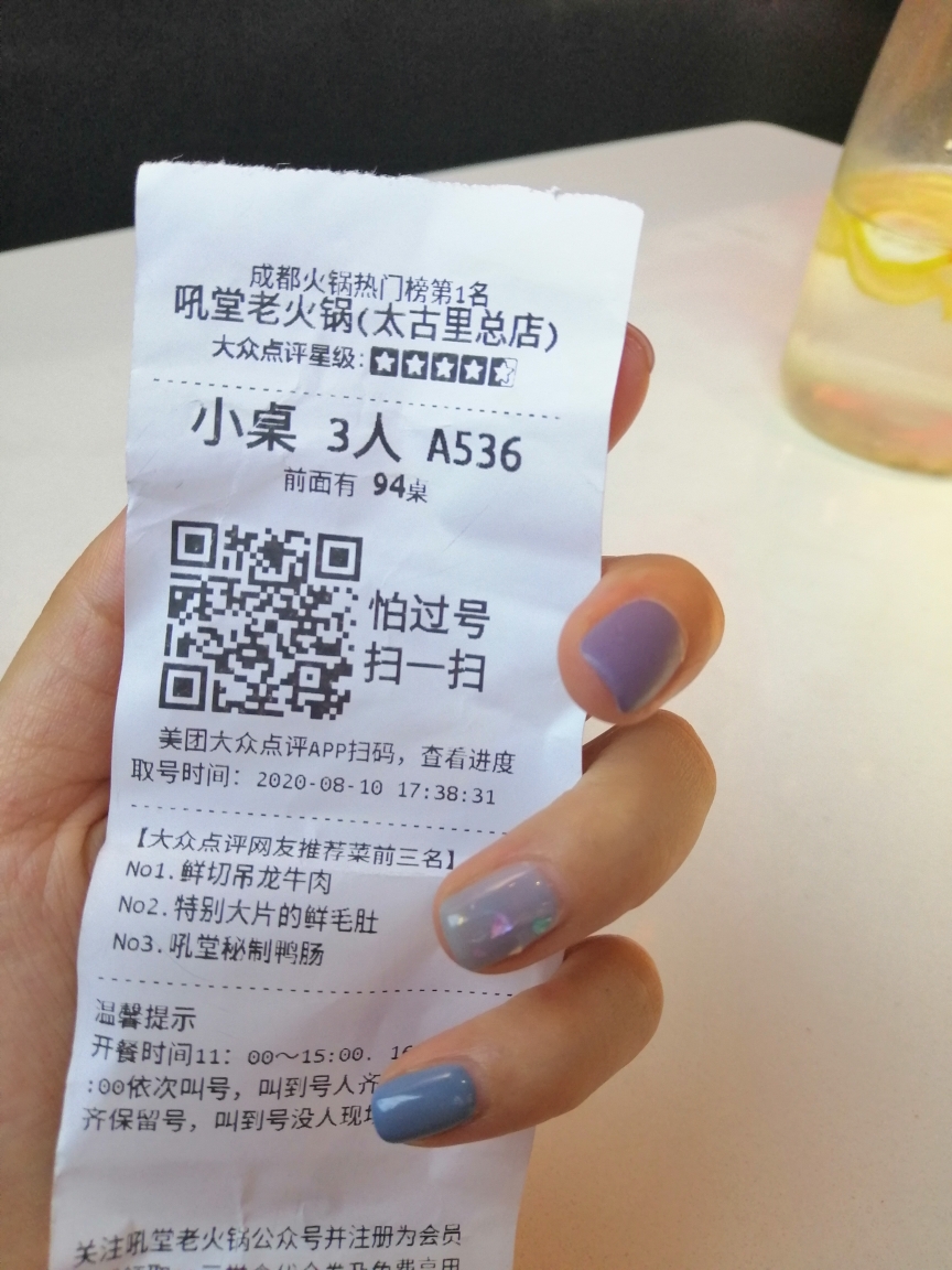 取到号后,我知道自己要吃到人生中等位时间最久的一餐饭了