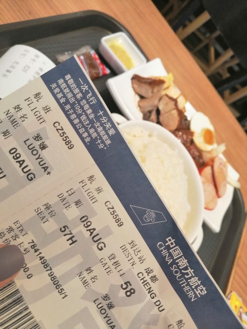 暑假期间旅游城市的机票真的好贵啊!为了省钱避开了白天段,买了晚上10:50深圳出发的航班,凌晨12点半才能到达双流机场,晚是晚了点毕竟便宜,上午还能躺尸半天,最重要的是小孙同学特意买了比我早到成都的票会提前在机场接我,所以没关系~
