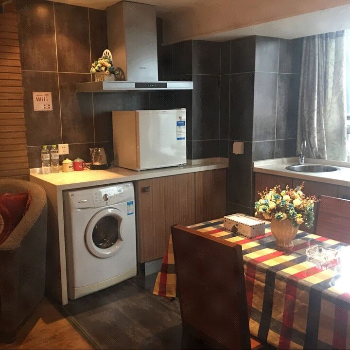 冰箱、洗衣机、餐桌都有,看着还算温馨赶紧洗洗睡,明天再撒欢儿