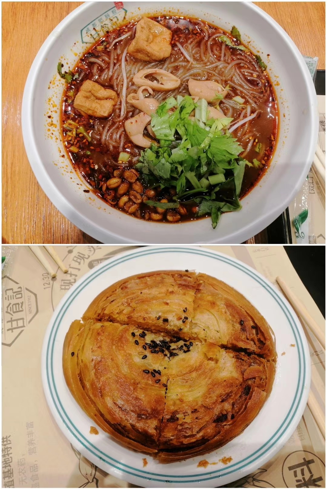 去地铁站的路上吃了在成都的第一餐,牛肉锅盔和招牌肥肠面,对于早餐来说有丢丢重口,不过味道还是很好滴