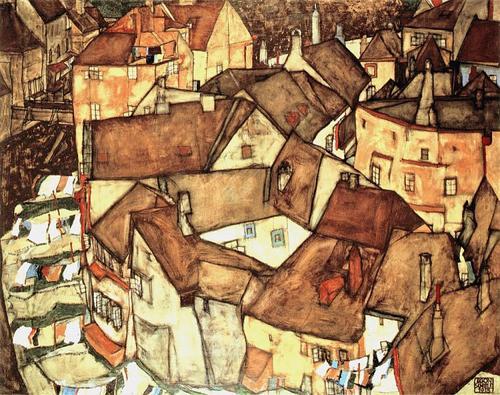 席勒曾经在克鲁姆洛夫生活和创作,下面是席勒画笔下的《小镇回忆》。