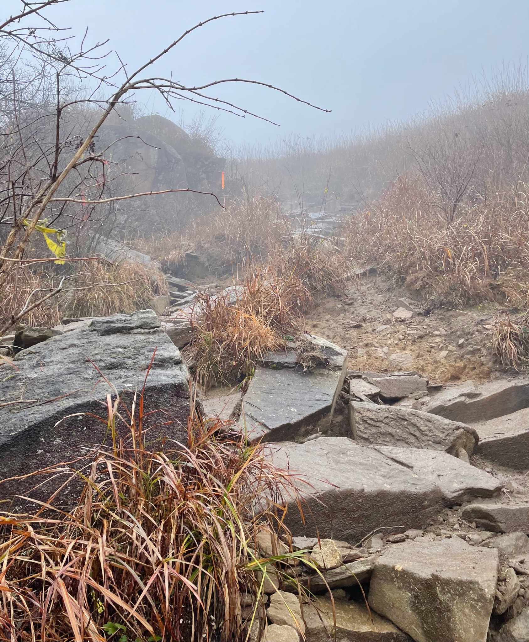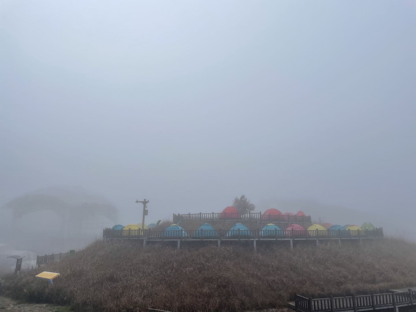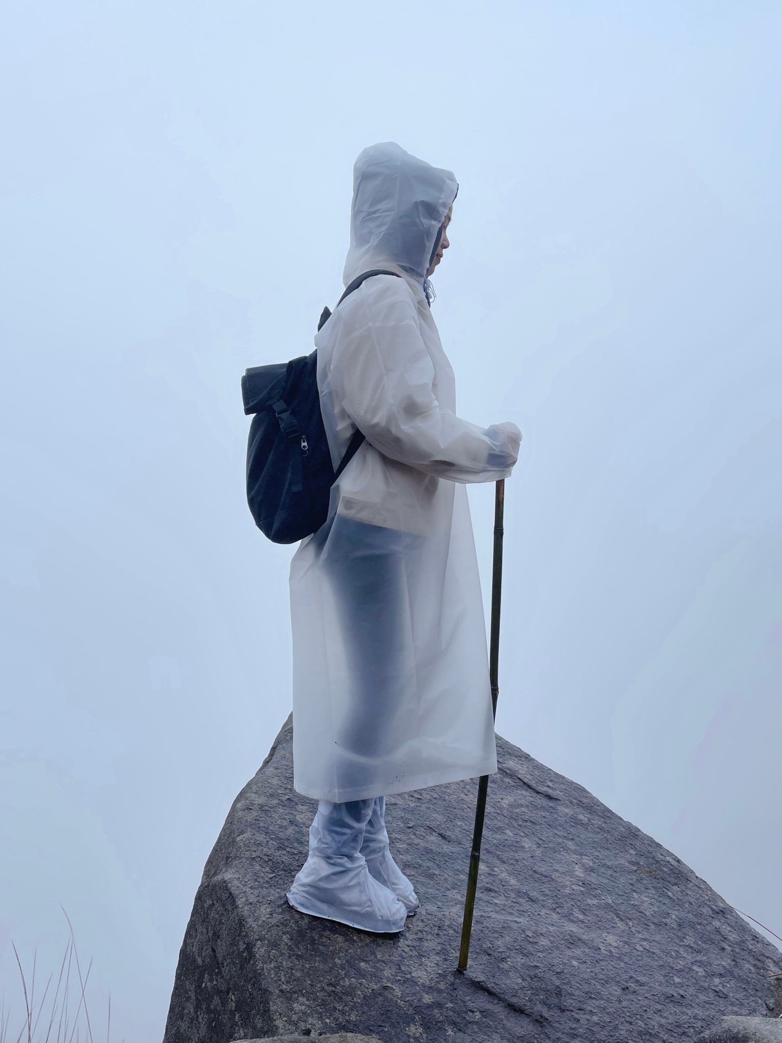 万万没想到的是大雾竟然持续到第二天的整整一天,还好早有准备雨衣和鞋套。穿好装备发现同行登山的人寥寥无几了。