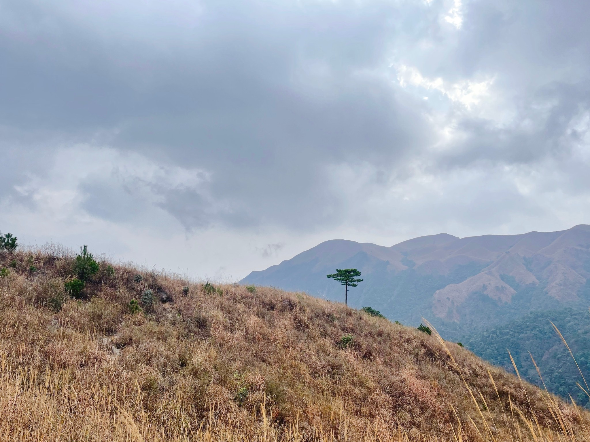 越往上爬,花草树木也逐渐变黄。给人一个错觉,一座座山身还是绿的,头确实秃的。