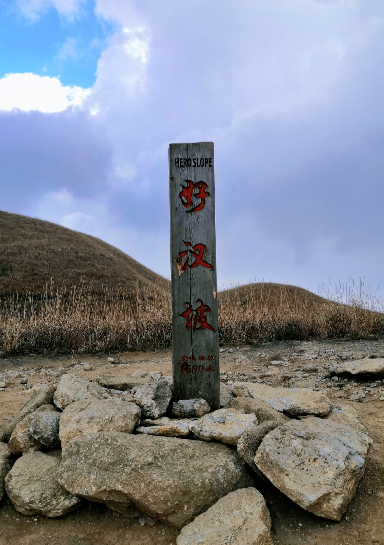 遇见一堆有组织的驴友围着拍照,才知道这是绝望坡,以为那么轻松就到达了,原来这只是起点。我们打算等他们拍完后拍一张石碑的照片。当他们每人轮流各种凹造型时,他们team里一位细心的小哥哥发现我们是反方向的,知道我们赶时间爬上这个绝望坡,好心的帮我们提醒他们队里暂停先让我们拍了好继续赶路,于是有了这一张呆呆的三人合照。
