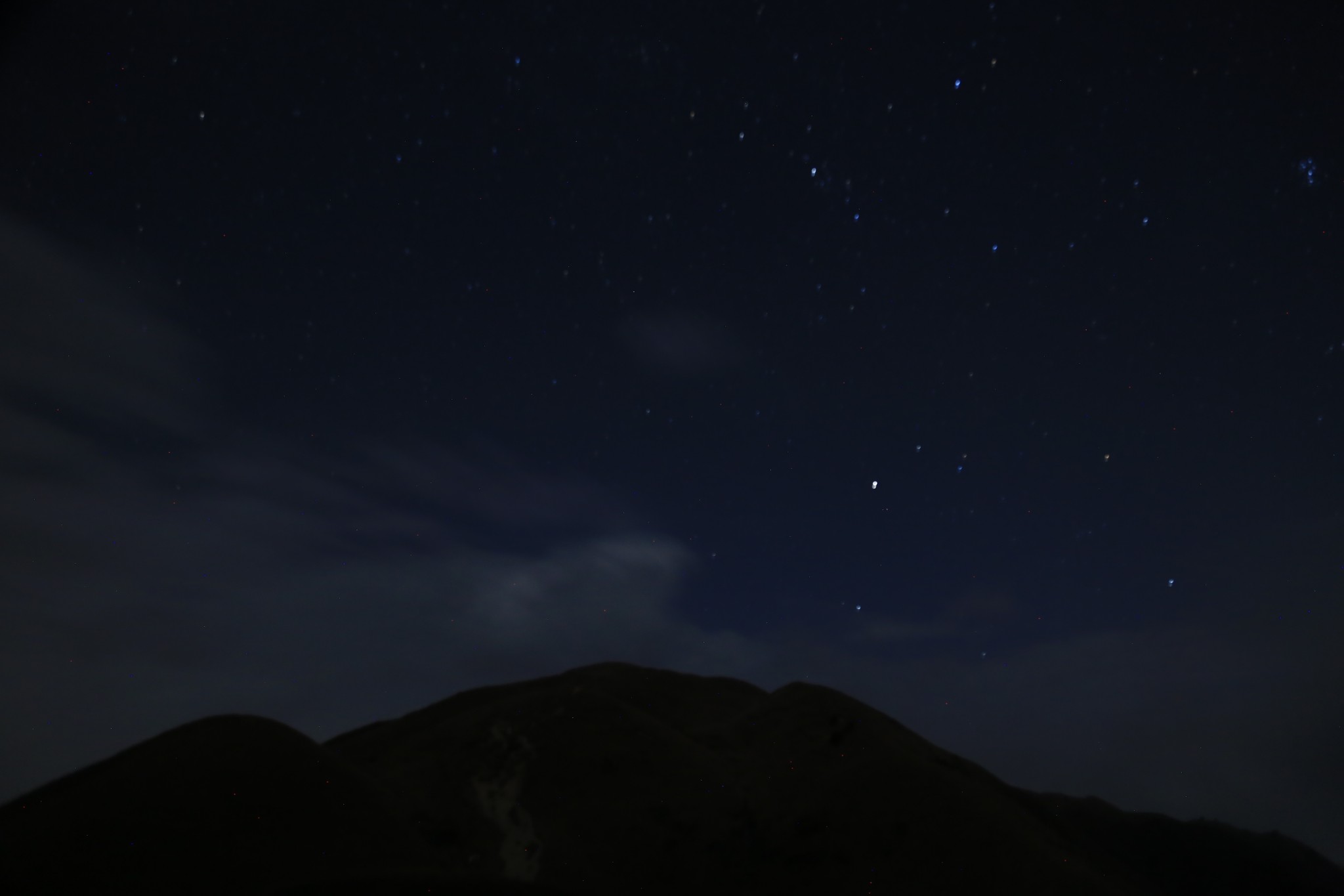 快要下午四点时终于入住了客栈,三人已经累瘫了在床上。休息了一会三人终于舍得起身去排队洗澡吃饭了。客栈是包餐的,并且不用跟其他人拼桌,菜还是现炒的,三菜一汤,130元一人一床位真的超值的了。吃饱回到床上本来还想刷刷手机,网络并不好,于是商量好调个12点的闹钟睡一觉起来看星空。闹钟醒来根本不想动啊,模模糊糊的感觉阿崔叫了叫我们,然后我非常困难的起了床在窗口探了探,看着窗外的星空,冲淡了我想继续睡觉的念头,兴奋的叫醒文静一起跑出去。可惜刚出到门口,大风一吹,一片片雾飘过来,幸亏我视力比较好,刚开始飘着薄薄一层白雾还是看到淡淡的满天星空。但是对于阿崔和文静两个近视的人来说就有点不友好了。三人还抱着一丝希望的,在客栈里搬出板凳在大风飘着雾水的夜里等着雾飘走,后来客栈又出来一个女孩子出来跟我们聊了一会,跟我们分享了她队友拍的星空照。最后风和雾水越来越大,终于打消继续等的念头,撤退回客栈继续睡觉。