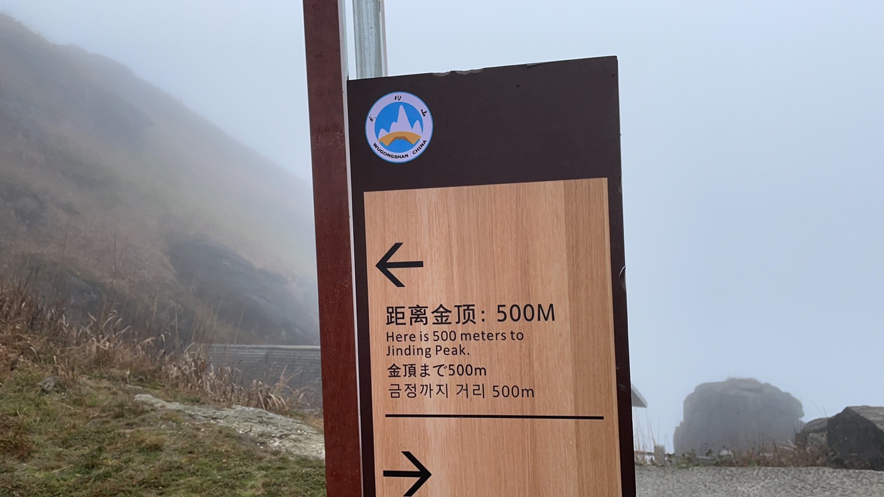 看到这个标示大家都以为要快到金顶广场了,想不到这是直线距离,实际要全称爬一个小时的楼梯,此时真的太需要登山竹了。