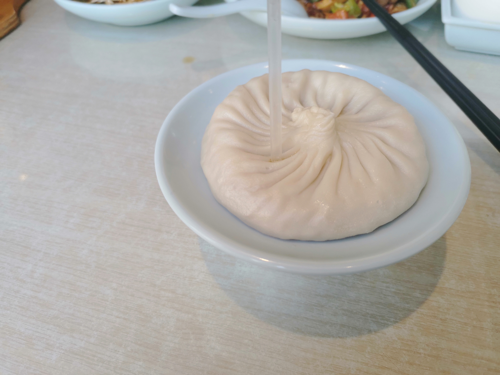 蟹黄汤包里面的汁水很多~吸完汁水里面就没有肉了。感觉还不如上海城隍庙里面的蟹黄汤包,汤汁吸完还有满满的肉馅可以吃。对我们来讲,包子么总要有馅才过瘾!