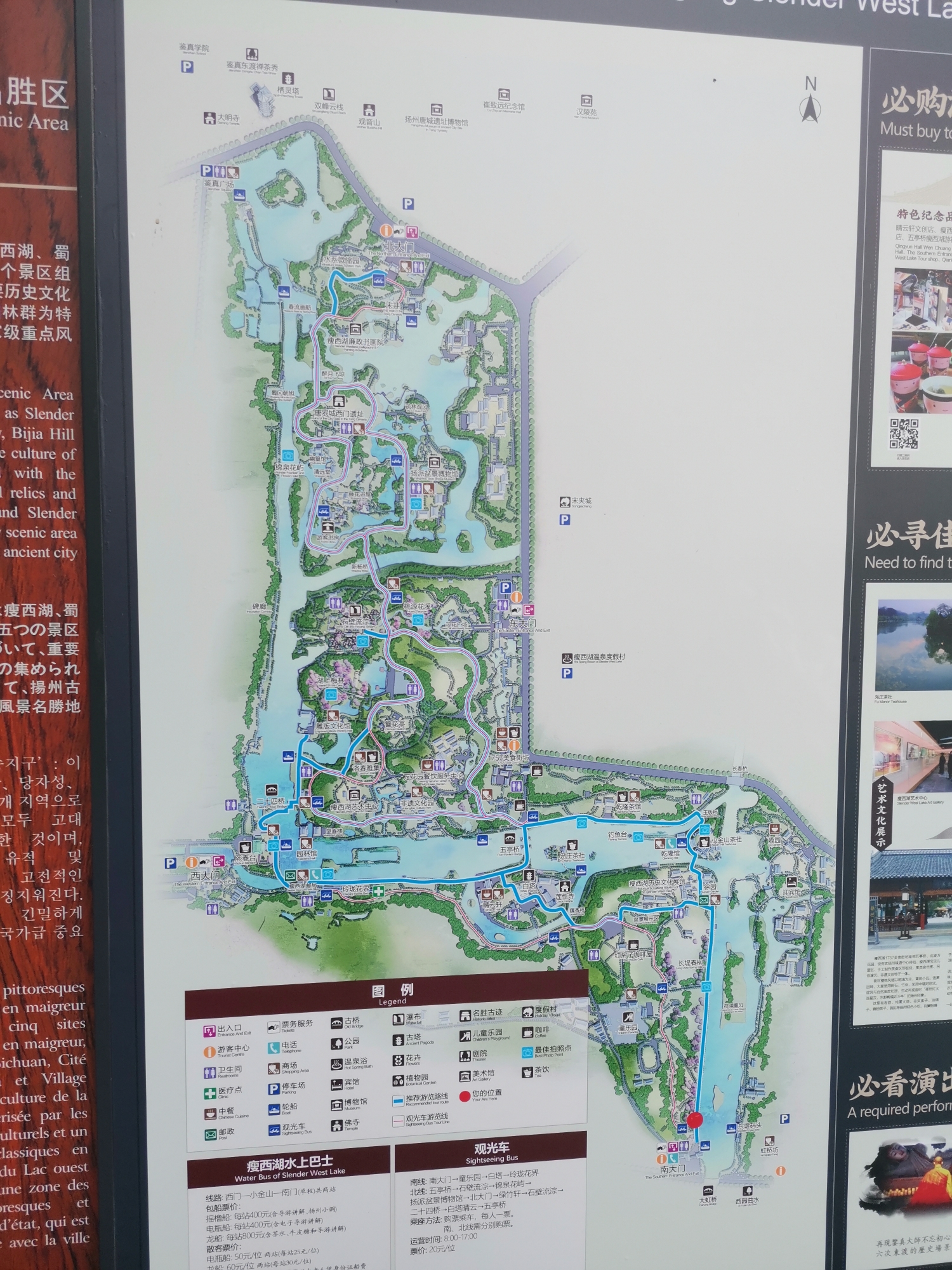 瘦西湖有东南西北四个门,西门离二十四桥经典最近。很多旅行团也都是从西门出发的。从西门进最大的好处就是可以蹭导游。但是导游们玩的景点相对比较少,大部分是从二十四桥进,绕一个圈最后到二十四桥集合回,适合游玩时间较少的朋友们。