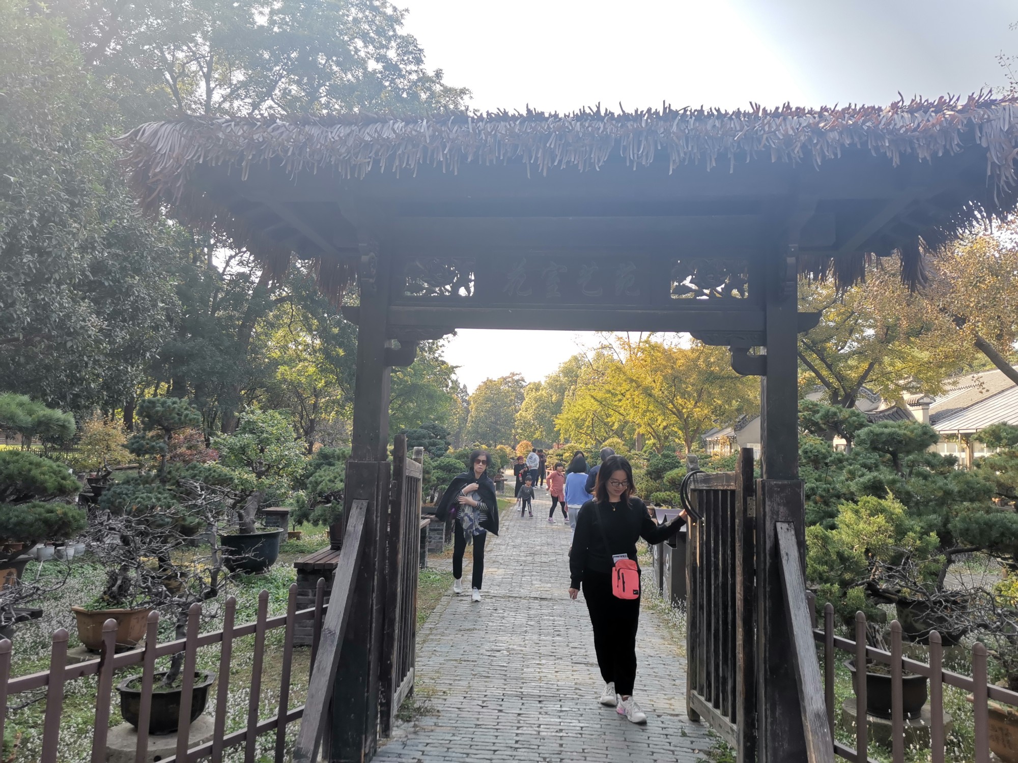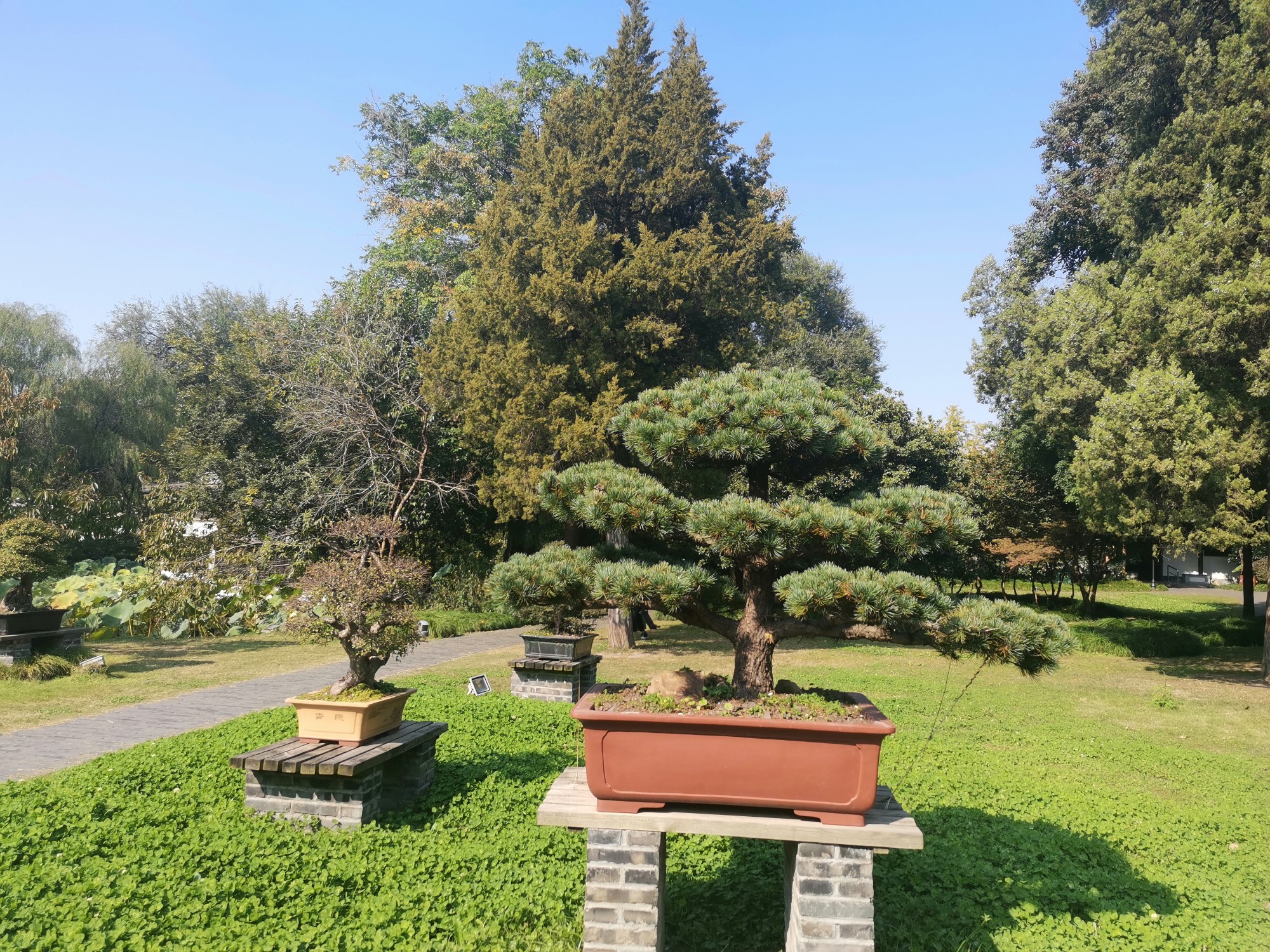 吃完饭之后就溜达溜达消化散步步行道瘦西湖景区。沿着小河流往景区方向走,路过盆景公园。扬州的扬派盆景是中国优秀传统艺术之一,中国盆景五大流派之一(传统的五大流派而言又分为南、北两大派,南派以广州为代表的岭南派,北派包括长江流域的川派、扬派、苏派、海派等。)。据说以前的扬州是家家有花园,户户养盆景。