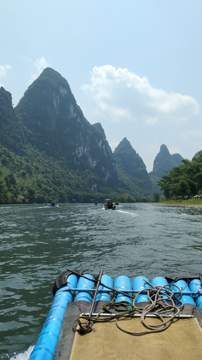 穿好救生衣,夏季的我们在漓江上吹吹风,甚好