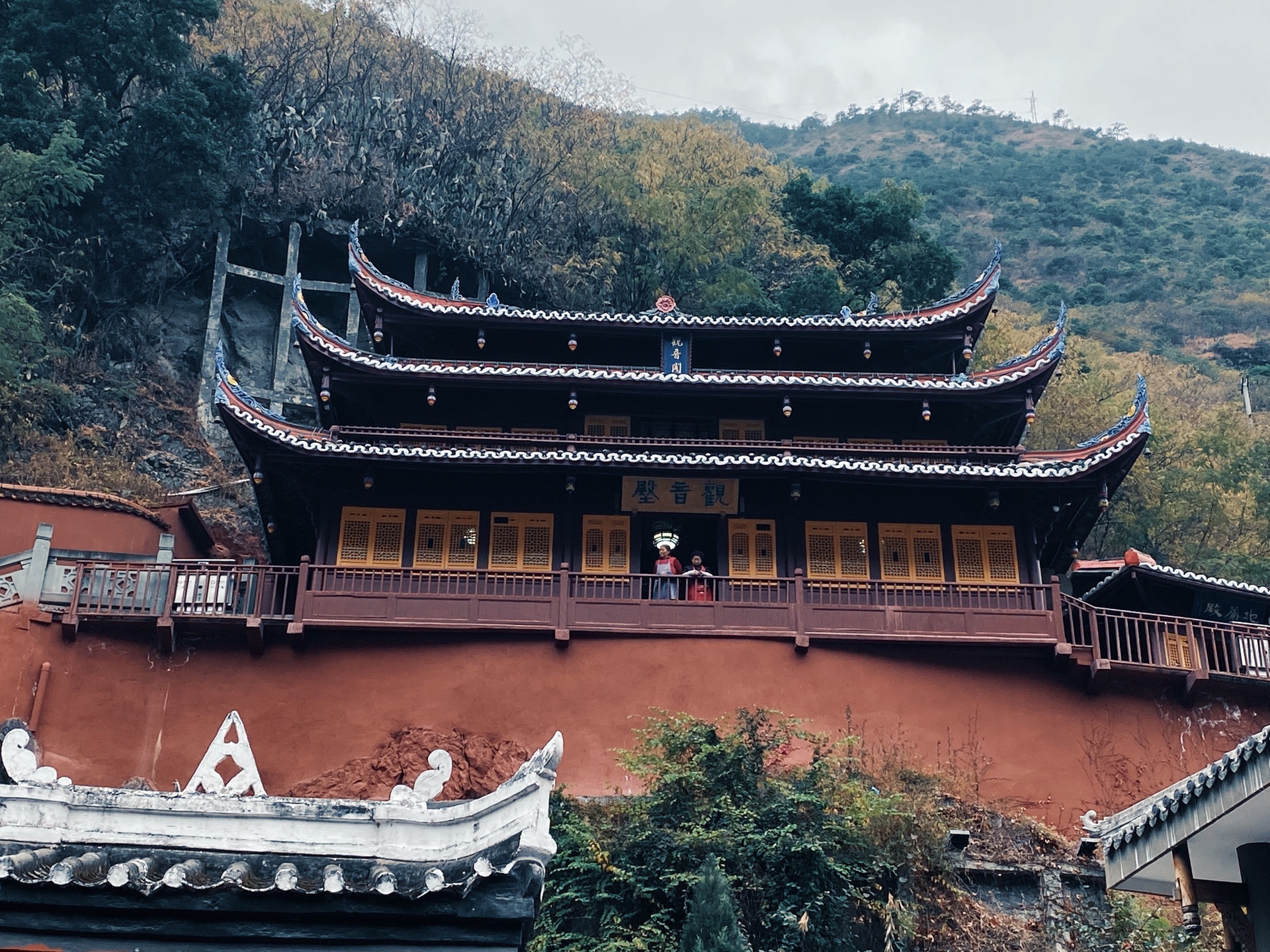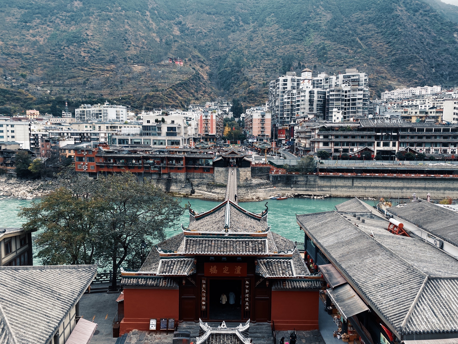 观音庙,泸定桥的对面就是依山而建立的观音庙,飞檐翘角、古朴大方,登高寺庙不需要钱。登上观音庙,泸定桥的全貌和沿河而建行的房屋尽收眼底,超级适合拍照,我去的时候碰巧遇到有游客烧香祈福,红墙青瓦、青山绿水,虽是冬季仍有秋天的尾巴。