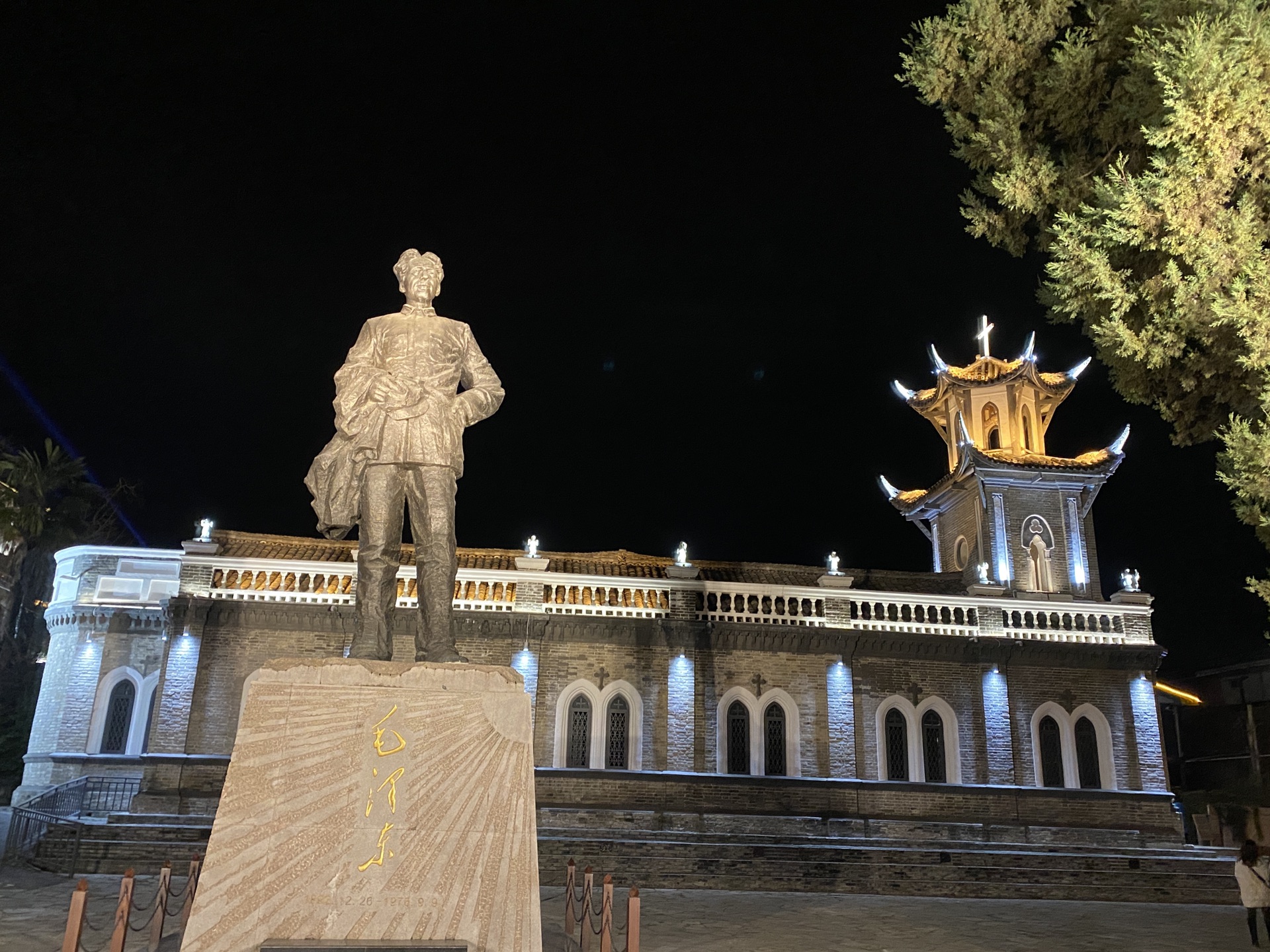 磨西古镇,最初了解这里是因为红军的磨西会议随后红军召开了飞夺泸定桥的计划,现在不仅因为红色文化,海螺沟的冰雪仙境让这里成为登山者和旅游者的大本营,由此而出名。这里也曾是毛的临时居住地,所以有一尊他的塑像,白天很多人在这里拍照打卡。