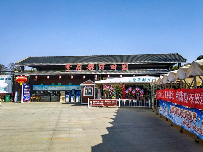 2020年11月9日,天晴。早上在地铁后湖大道站,乘坐21号线到阳逻开发区下,在公交阳逻开发区政务中心站,转乘Y315路公交车(约20分钟一班),到紫薇都市田园站下,过马路就是景区大门。