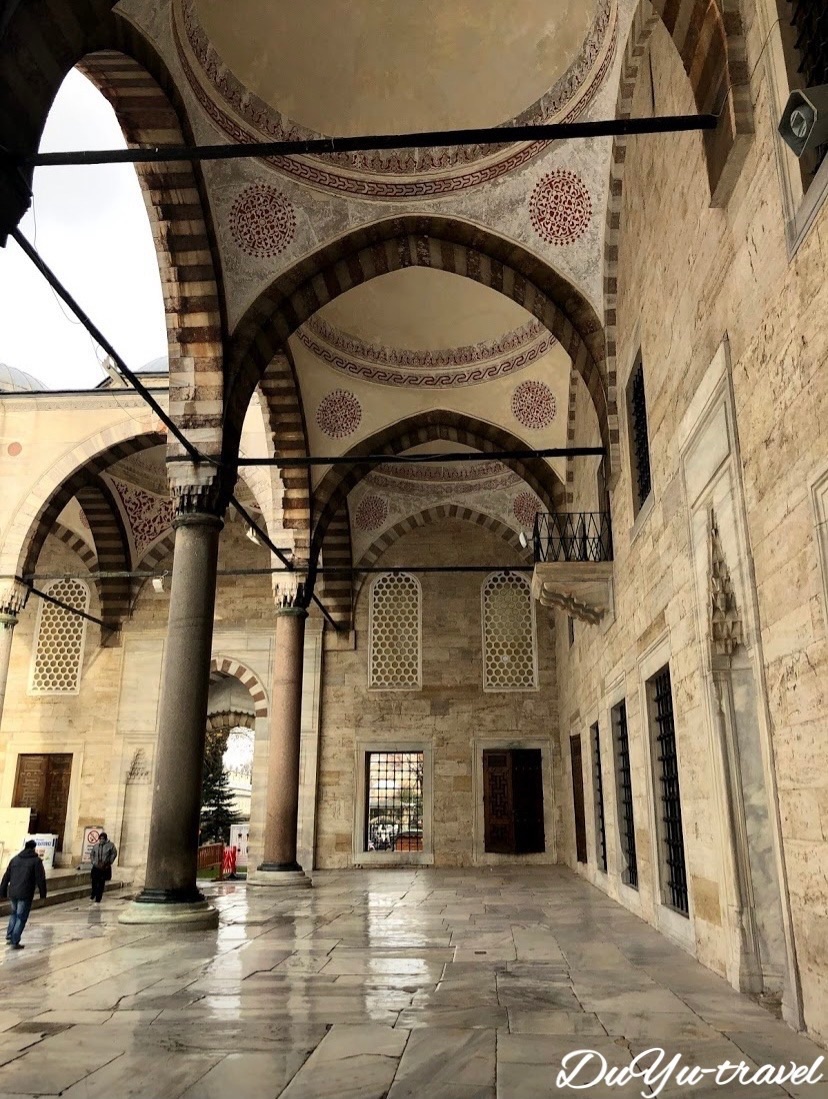 走进门后,能看见前方高高耸立的主穹顶,是由40根強而有力的肋拱支撑,并由一种特殊的空心砖建成。