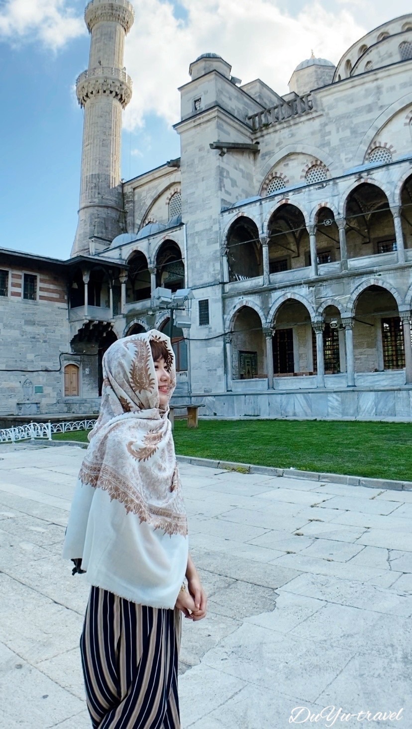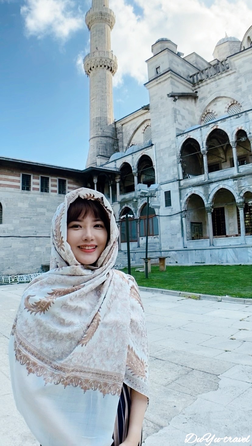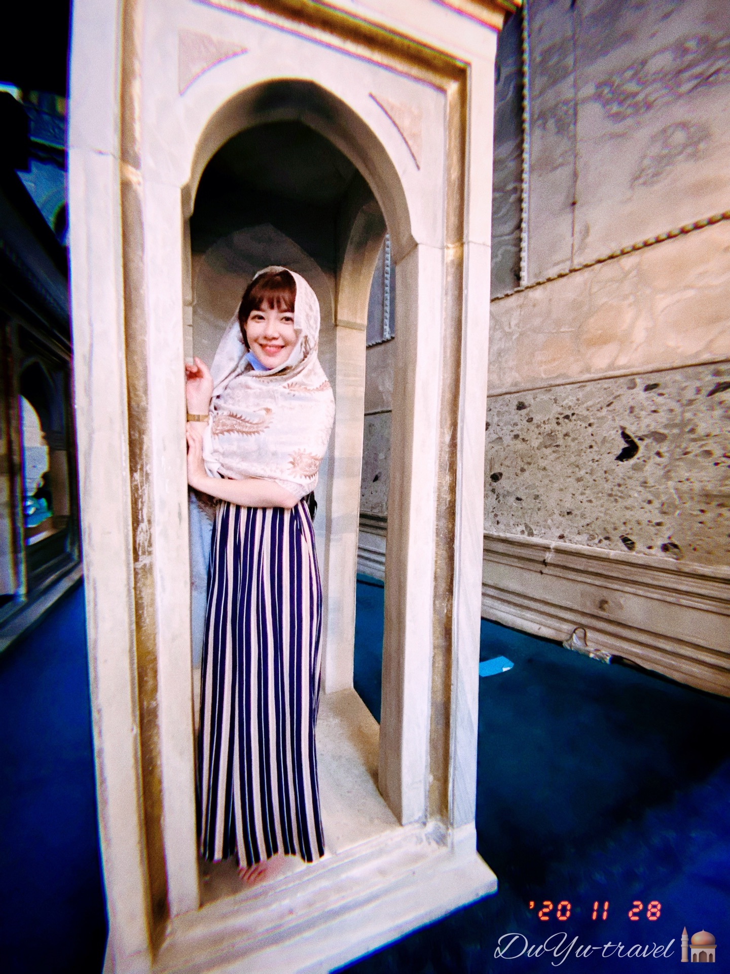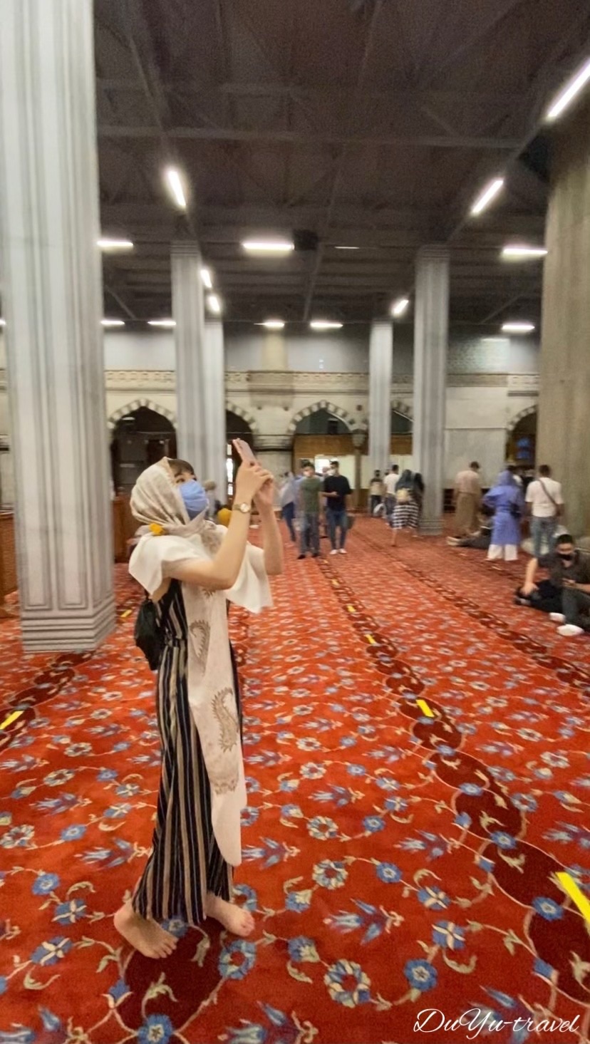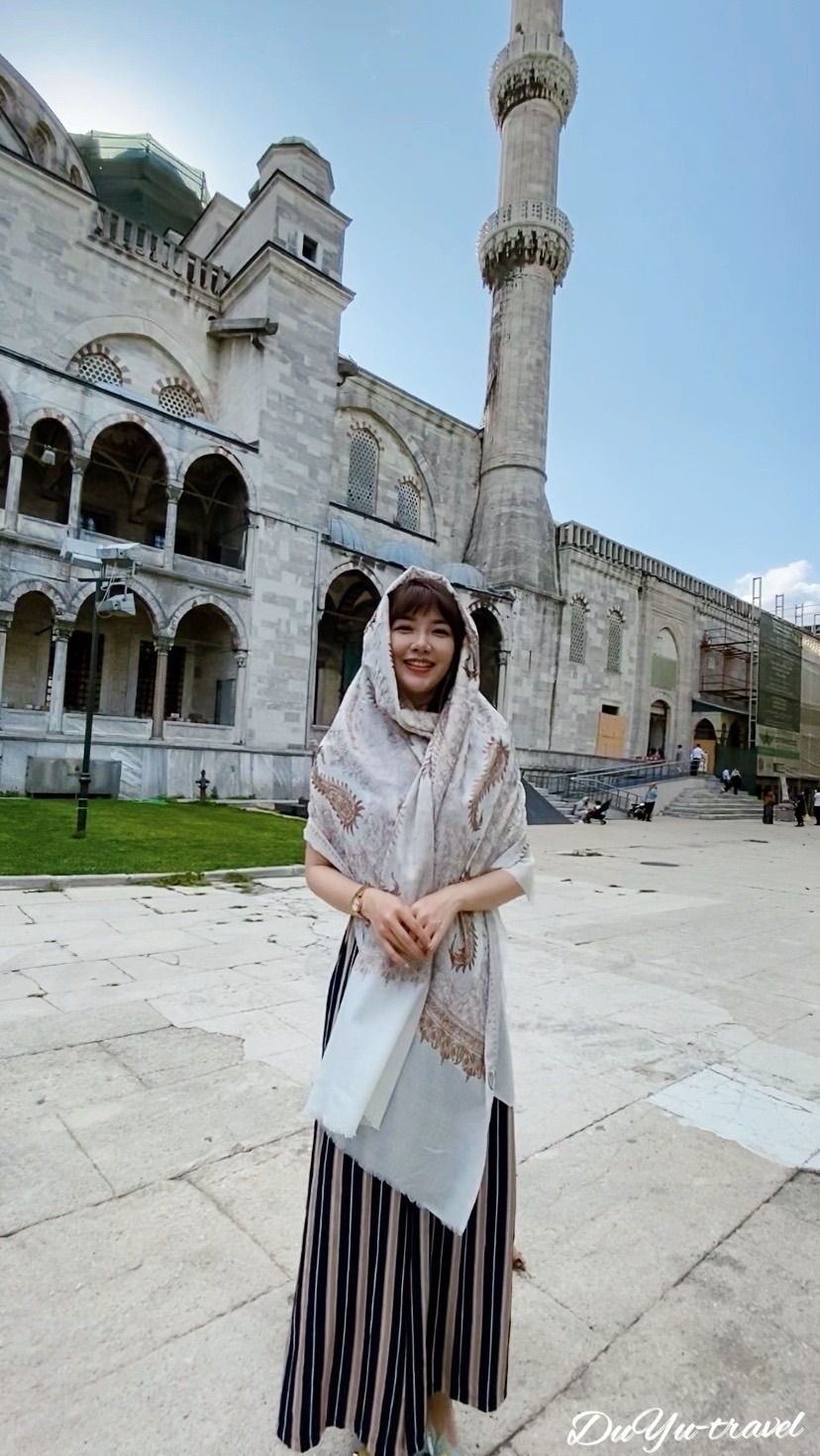 进去清真寺参观的时候,女生一定要披件头巾,如果没带,清真寺外有免费的头巾租借