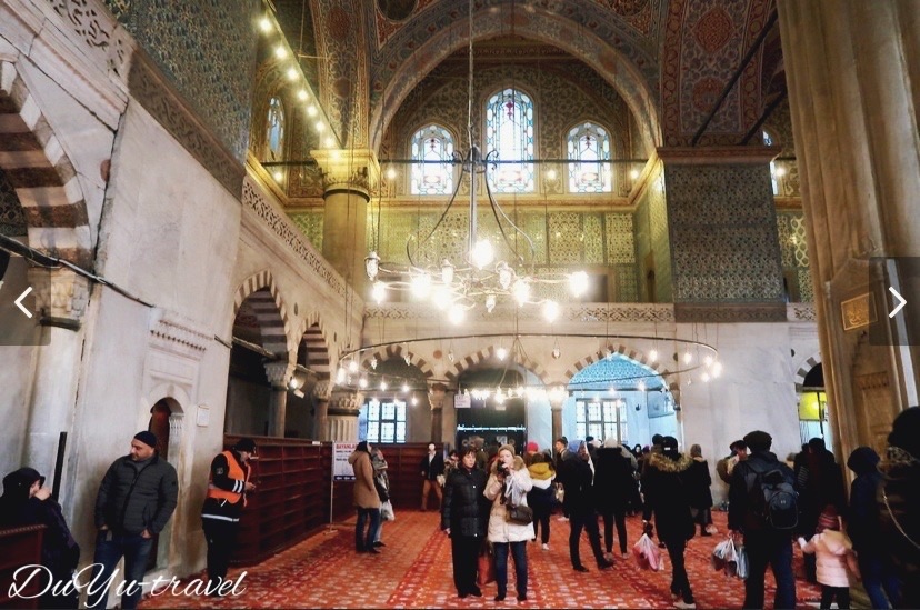 其实蓝色清真寺之所以称为「蓝色」,是因为清真寺的内部装饰大量使用了带有蓝色花纹的瓷砖而得名哦