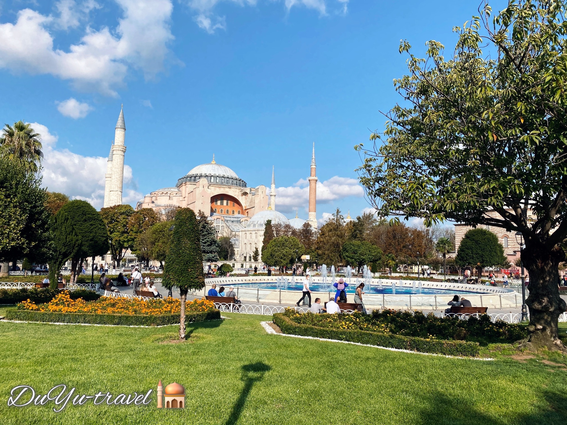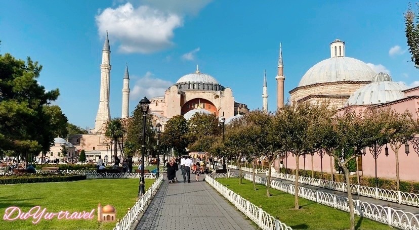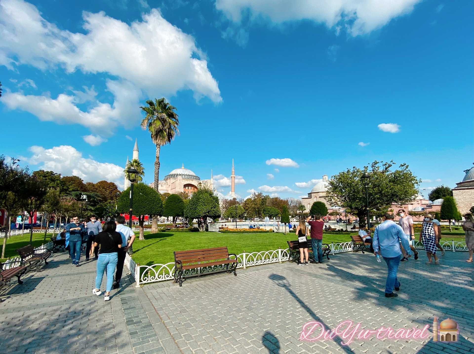 圣索菲亚的位置离蓝色清真寺很近,所以参观完蓝色清真寺你可以徒步去圣索菲亚哦