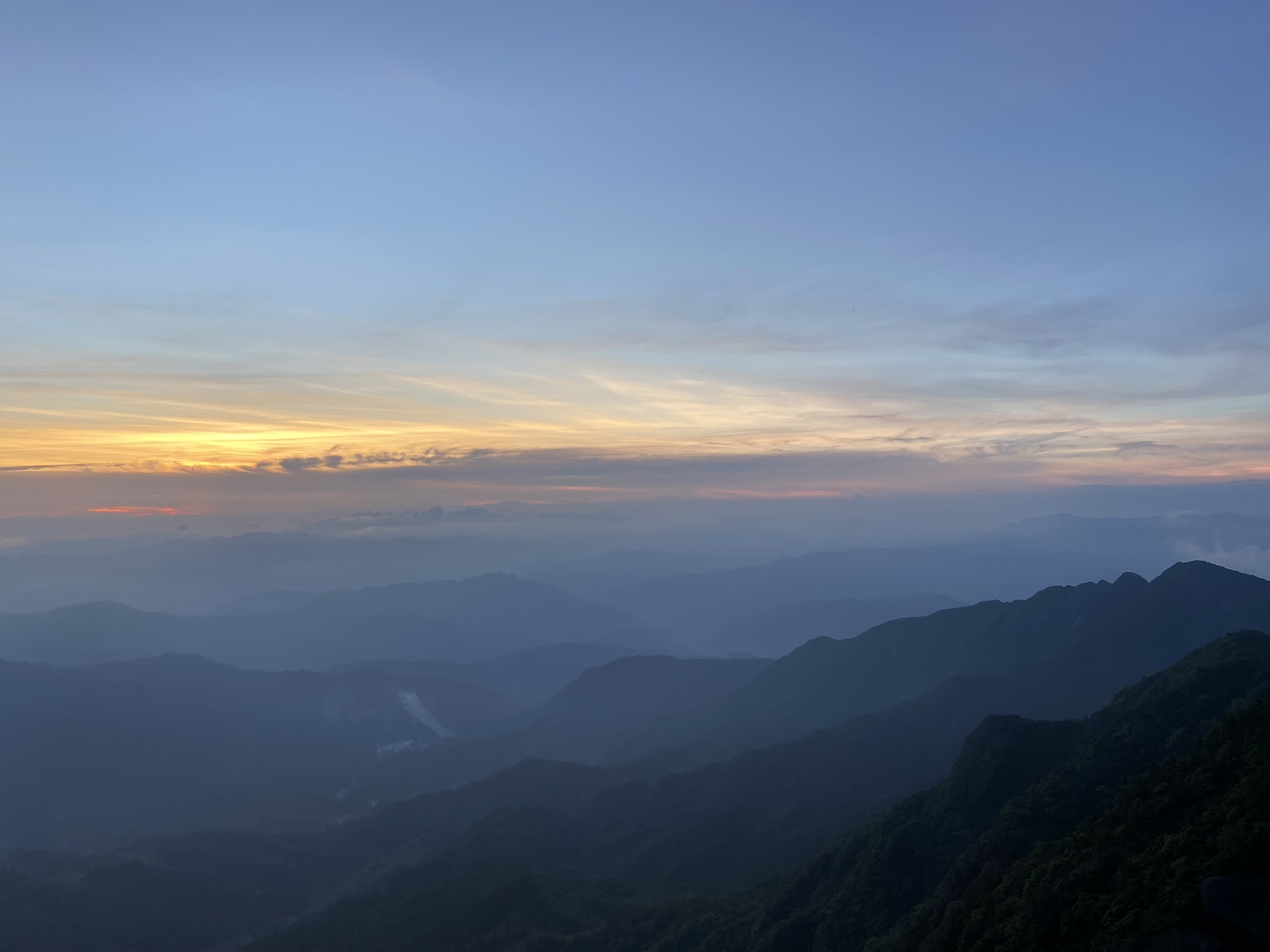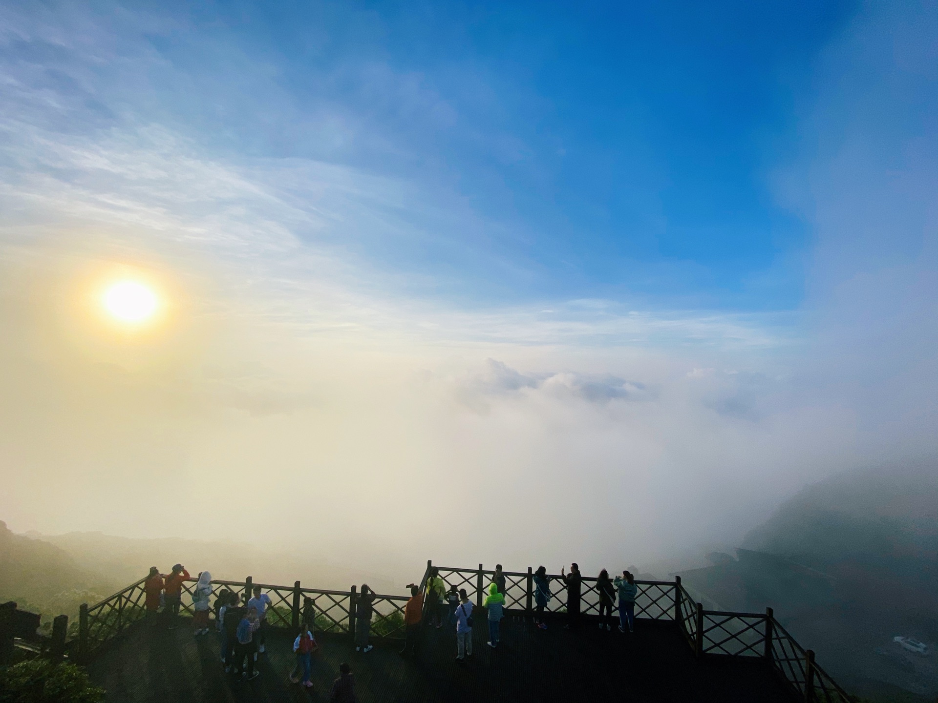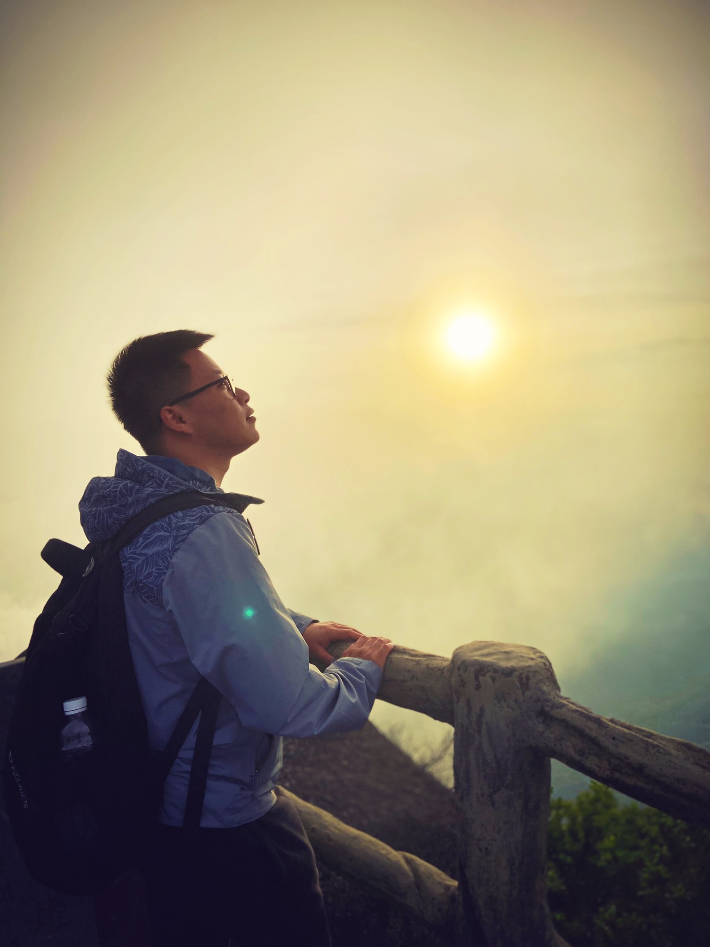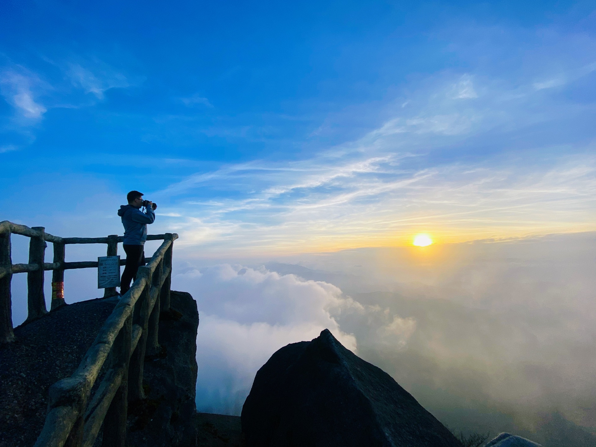 没见到日出那一瞬间,被厚的云雾挡住了。扒开云雾的瞬间,感受到了太阳光的温暖