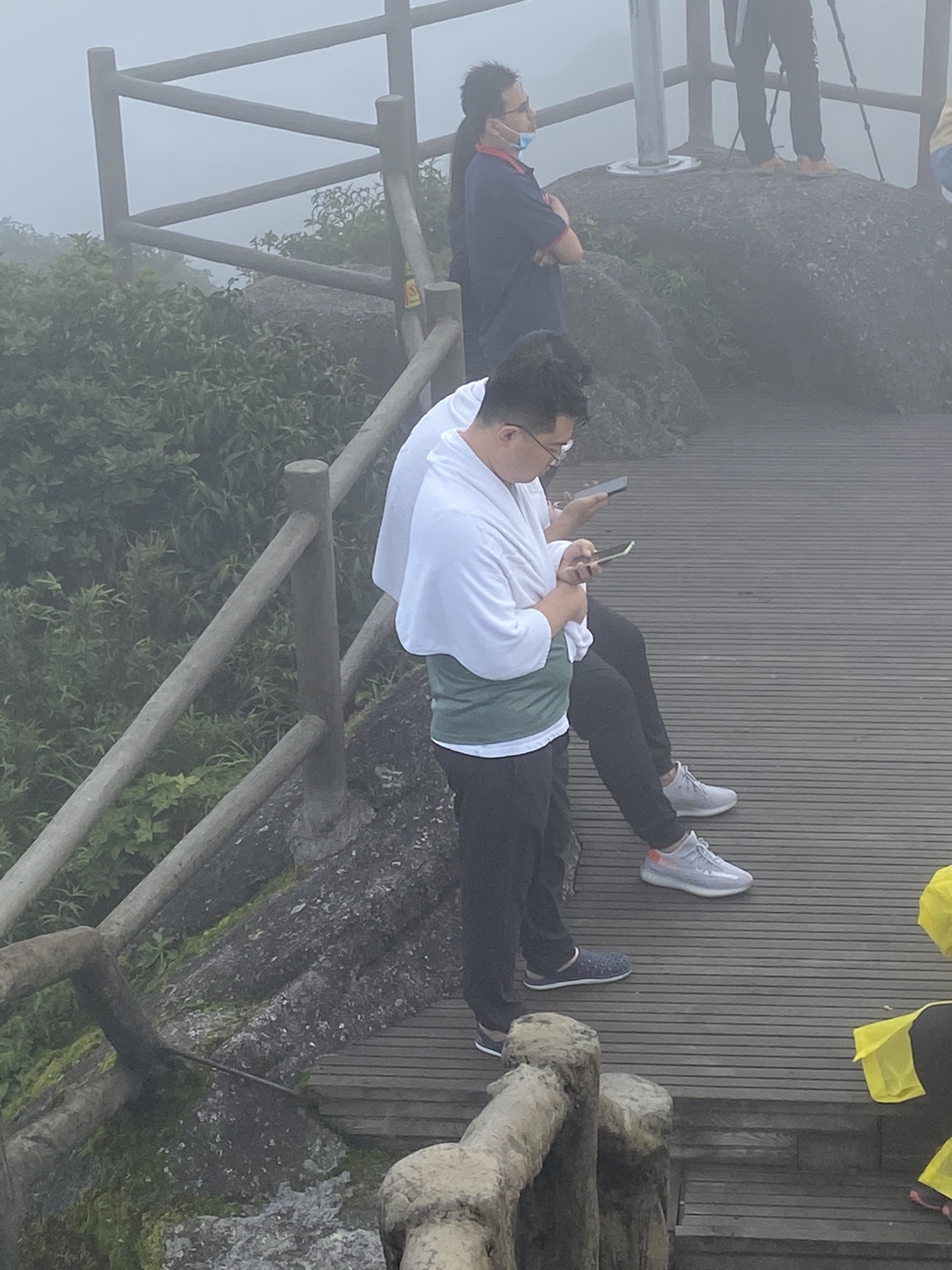 在山顶酒店住一晚,第二天五点多起来看日出,哈哈这两个哥们厉害,披个酒店毛巾就出来了