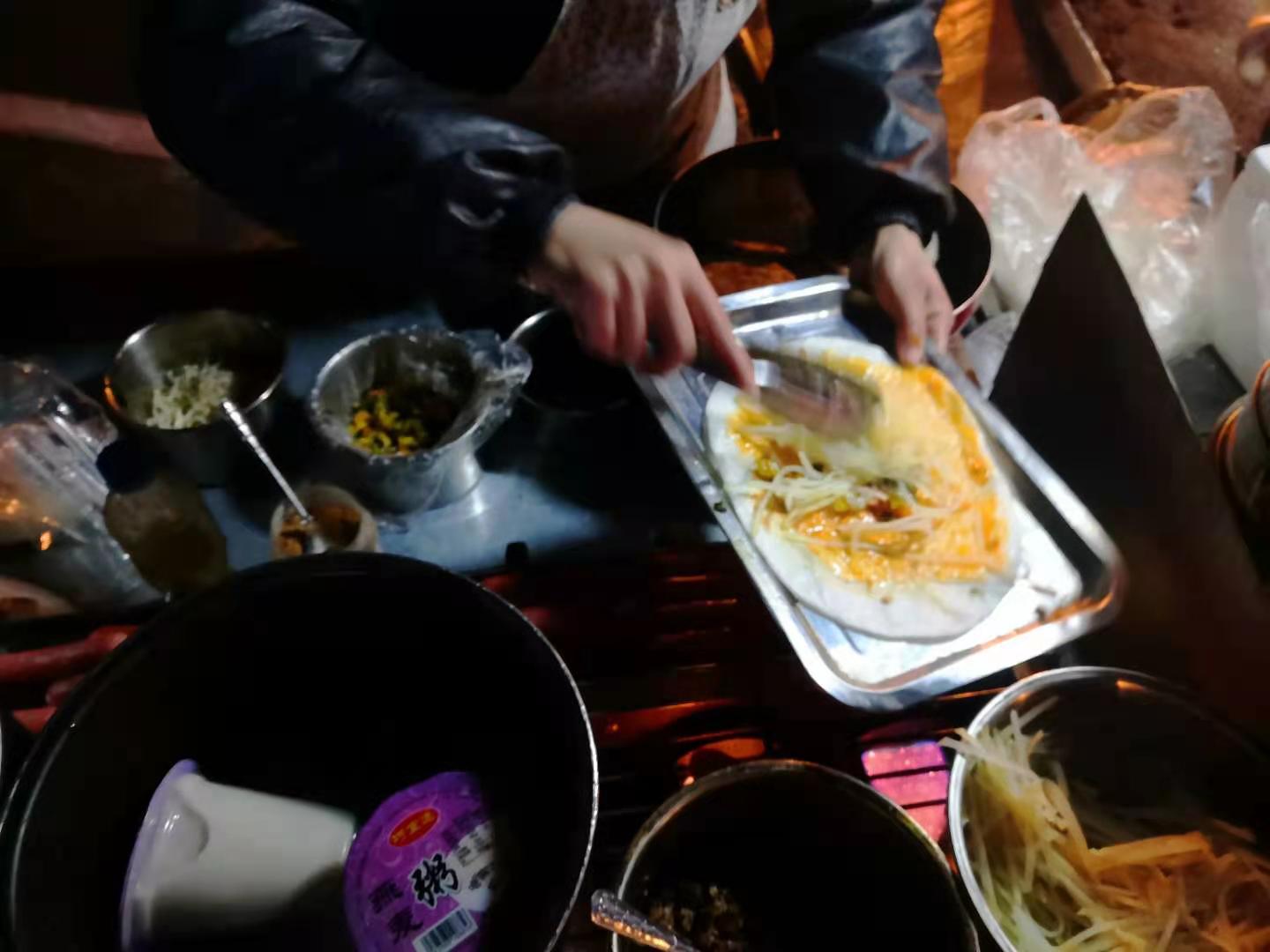 为了吃大锅牛肉米线,来忠义市场这边,无意中还发现了许多卖早点的摊子,要了烤饵块和加了鸡蛋的丽江粑粑,真好吃!价格超便宜!