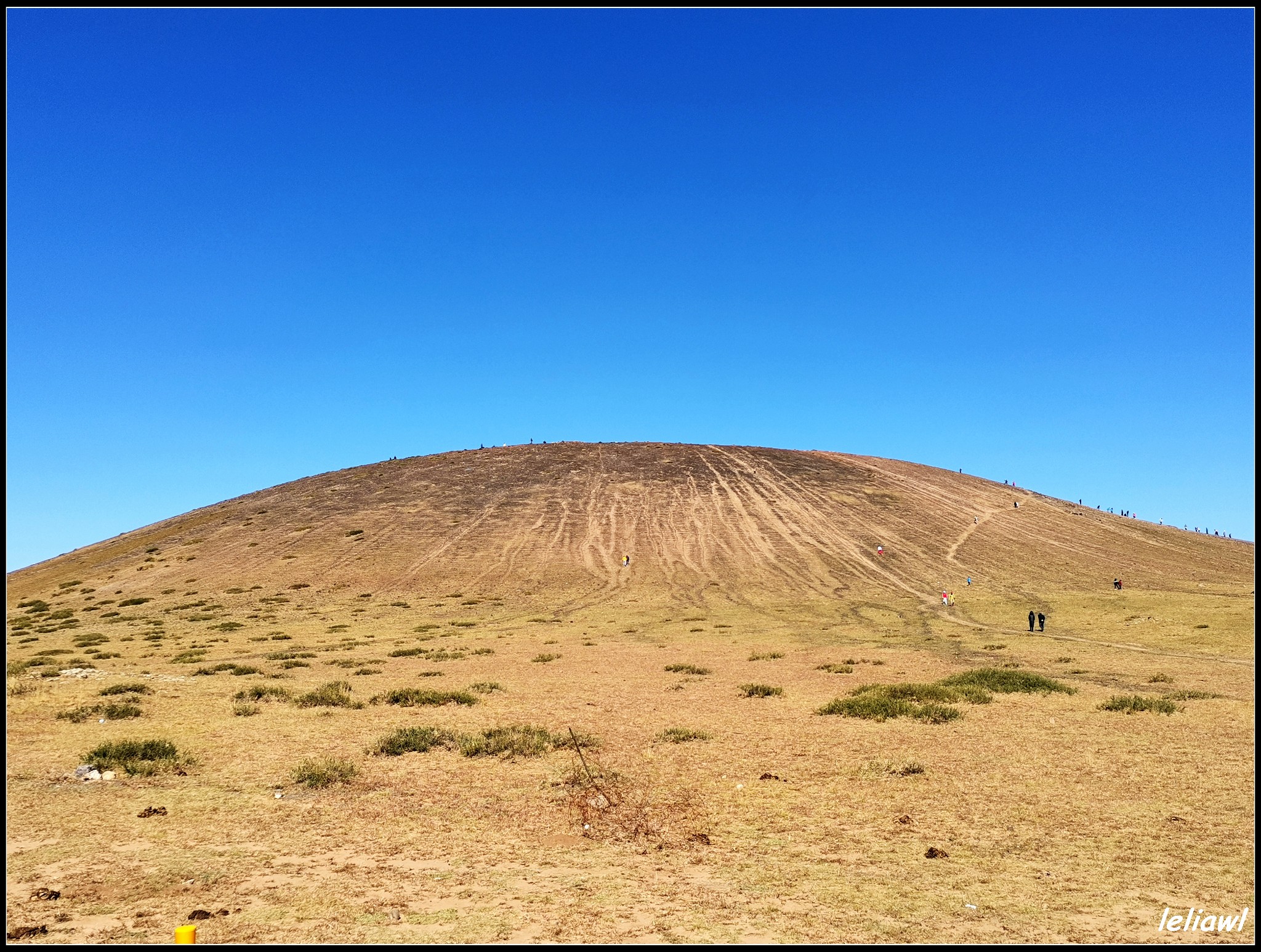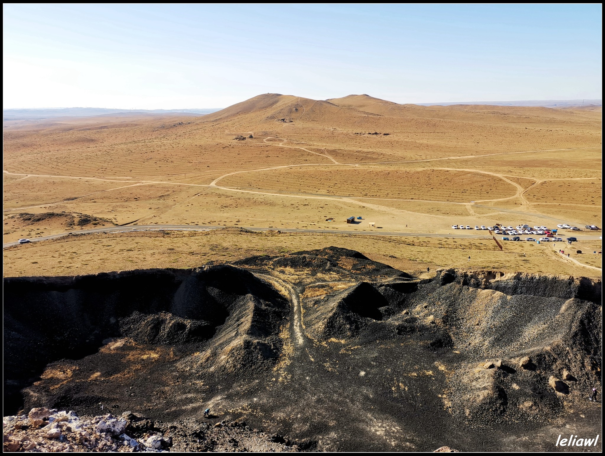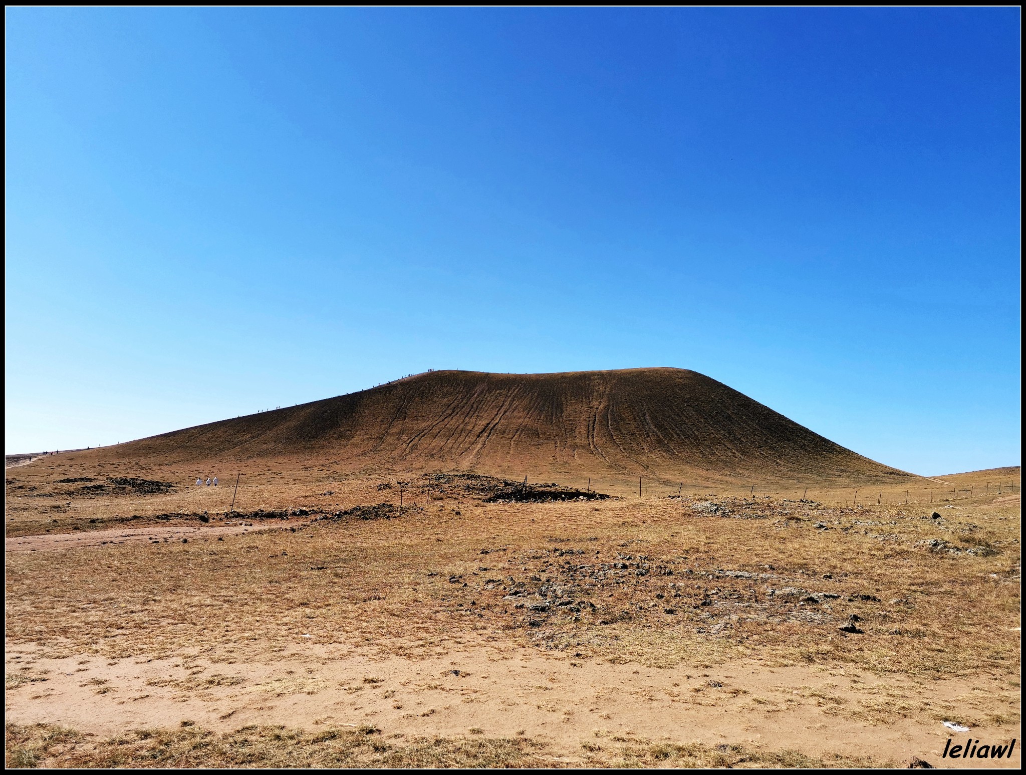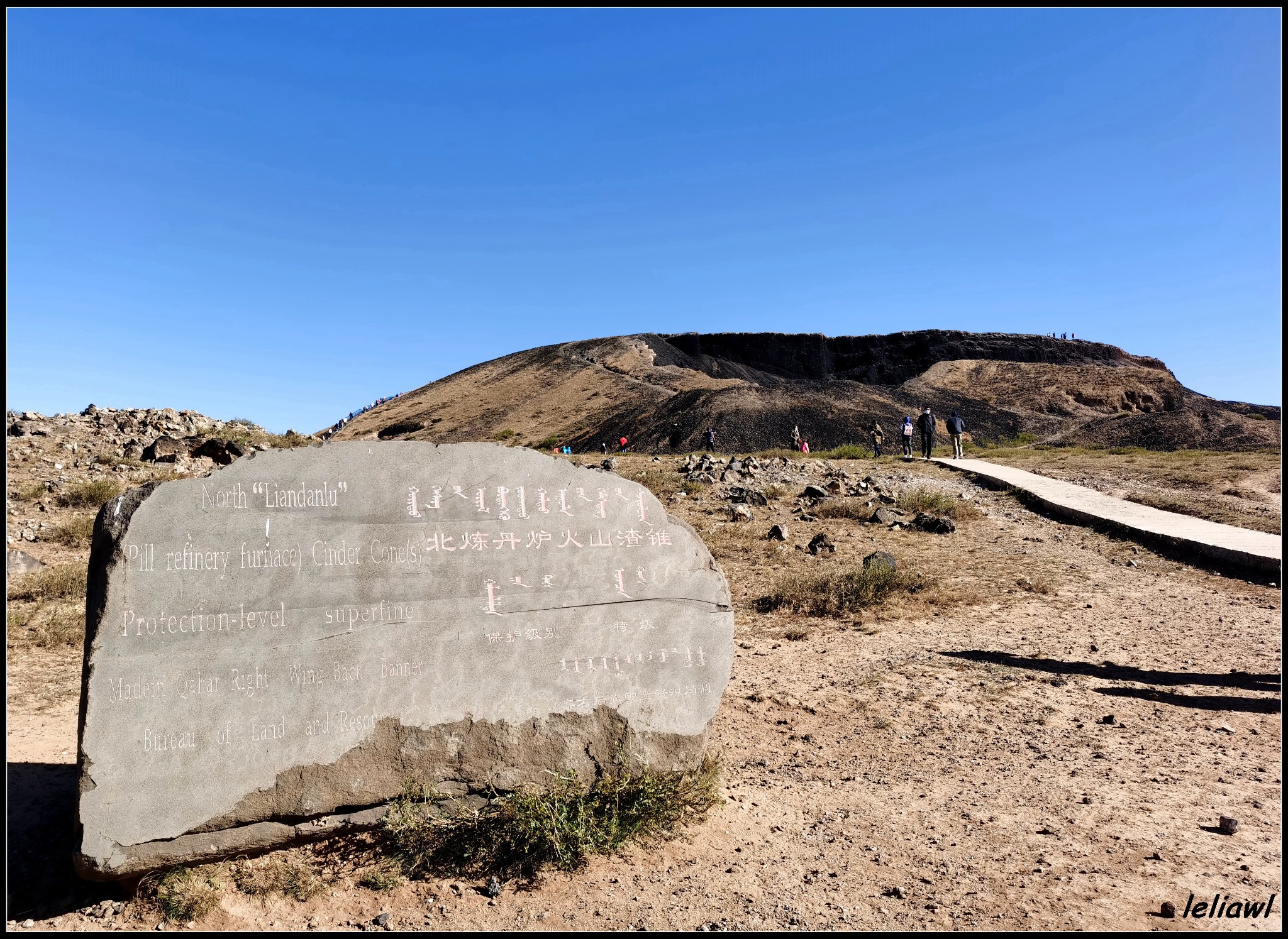 乌兰察布过来,下高速后首先看到可以攀爬的是三号火山,又称北炼丹炉。开采了一部分,修有木栈道,比较好爬。