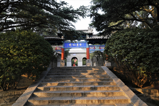 丹崖仙境坊是蓬莱阁景区具有标志性的建筑,原来叫“丹崖胜境坊”,是木质结构。清光绪末年被毁坏,民国初年修复后,改名“丹崖仙境坊”,后又被毁坏,这是1981年下半年修复的。“丹崖仙境”四个字,是董必武副1964年来蓬莱阁时题写的。因为蓬莱阁坐落在丹崖山上,这里的石头是红褐色的,所以称为“丹崖”。
