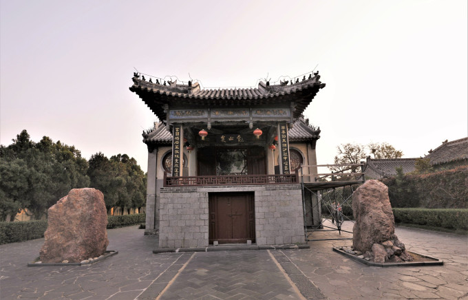 万寿无疆碑,清朝康熙皇帝曾降旨普免田赋一年。登州官吏为颂康熙皇帝普免田赋以百姓感恩的名义,立万寿无疆碑。并建起了万民感德碑亭。清末民初碑亡亭毁,仅存碑座。现存石碑是1995年重立石碑,碑身正面刻“万寿无疆”四个大字,背面刻《重立万民感德碑记》。